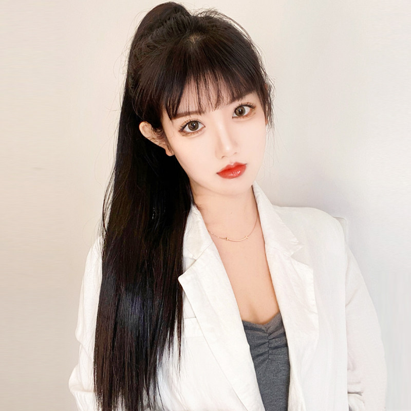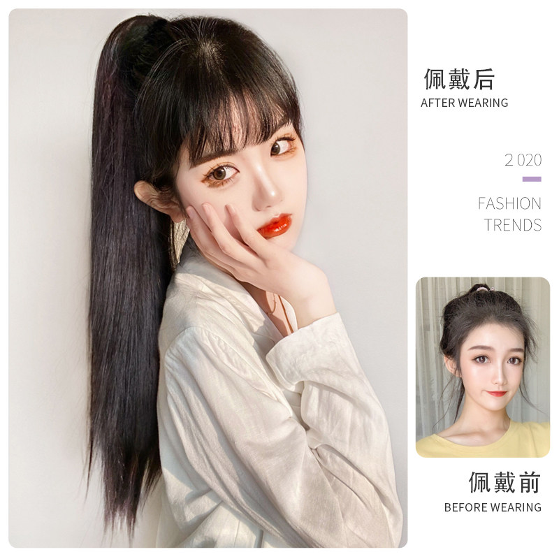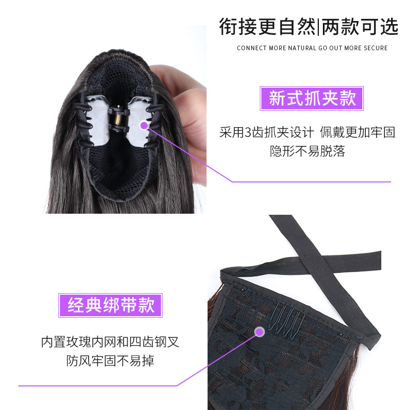 Wig ponytail female lace-up straight hair high ponytail natural super long fake ponytail net red super light grasp clip type fake braid