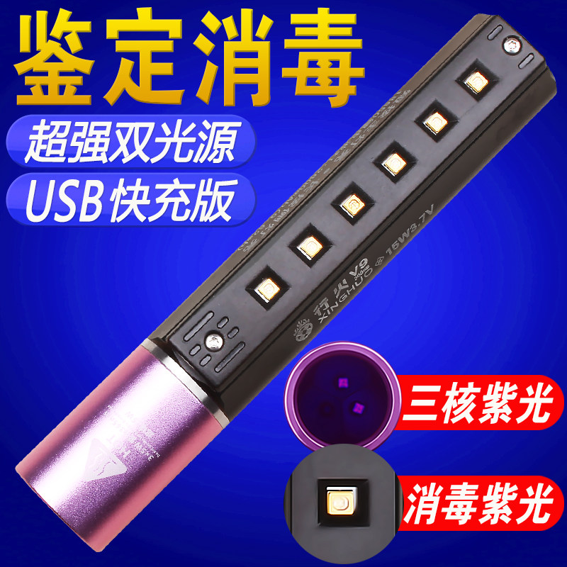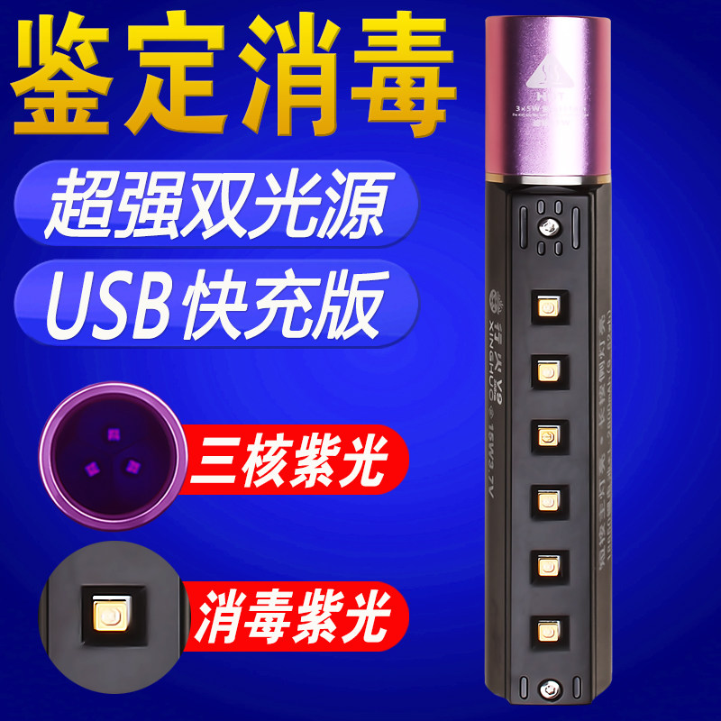 Triple Core Purple Light Flashlight flashlight Banknote Lamp Jade Appraisal of Fluorescent Light to detect 265nm UV disinfection lamp