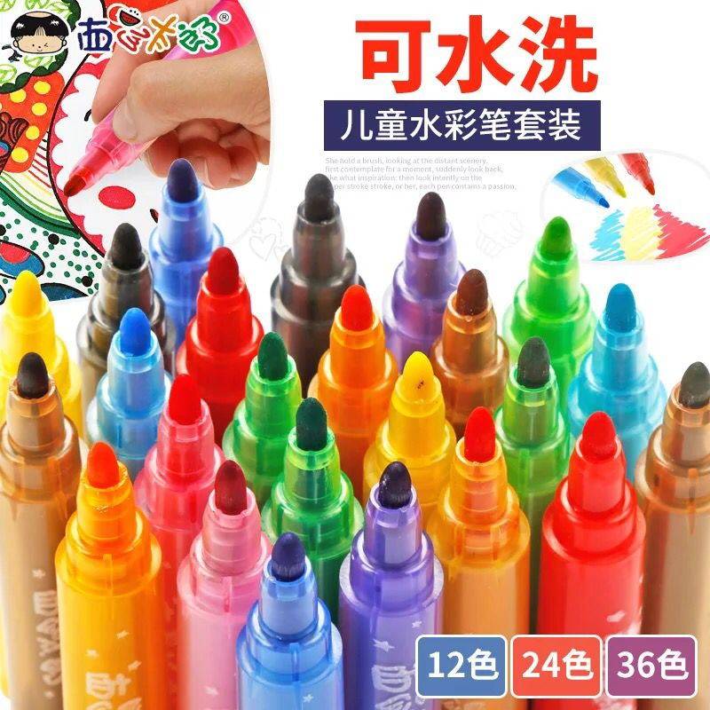 Watermelon Taro Children Watercolor Pen Suit 24 24 36 Color Kindergarten Baby Paintbrush Large Capacity Coarse Head Color Pen