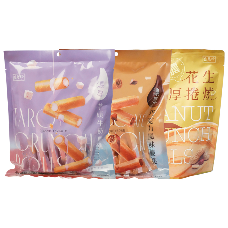Rich Aromas of Taro Milk Chocolate Crisp Rolls 140g Taiwan Leisure Snack Sandwich Egg Roll Bagged Sweet