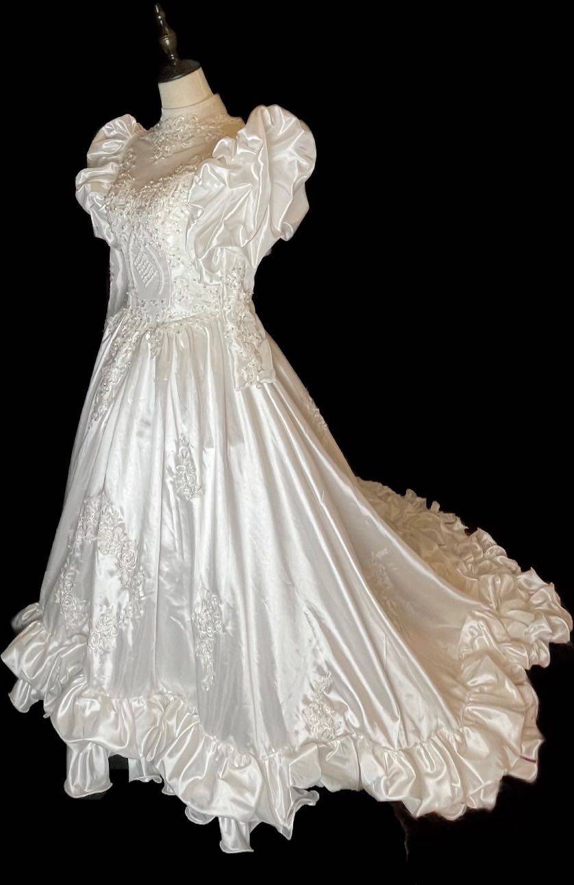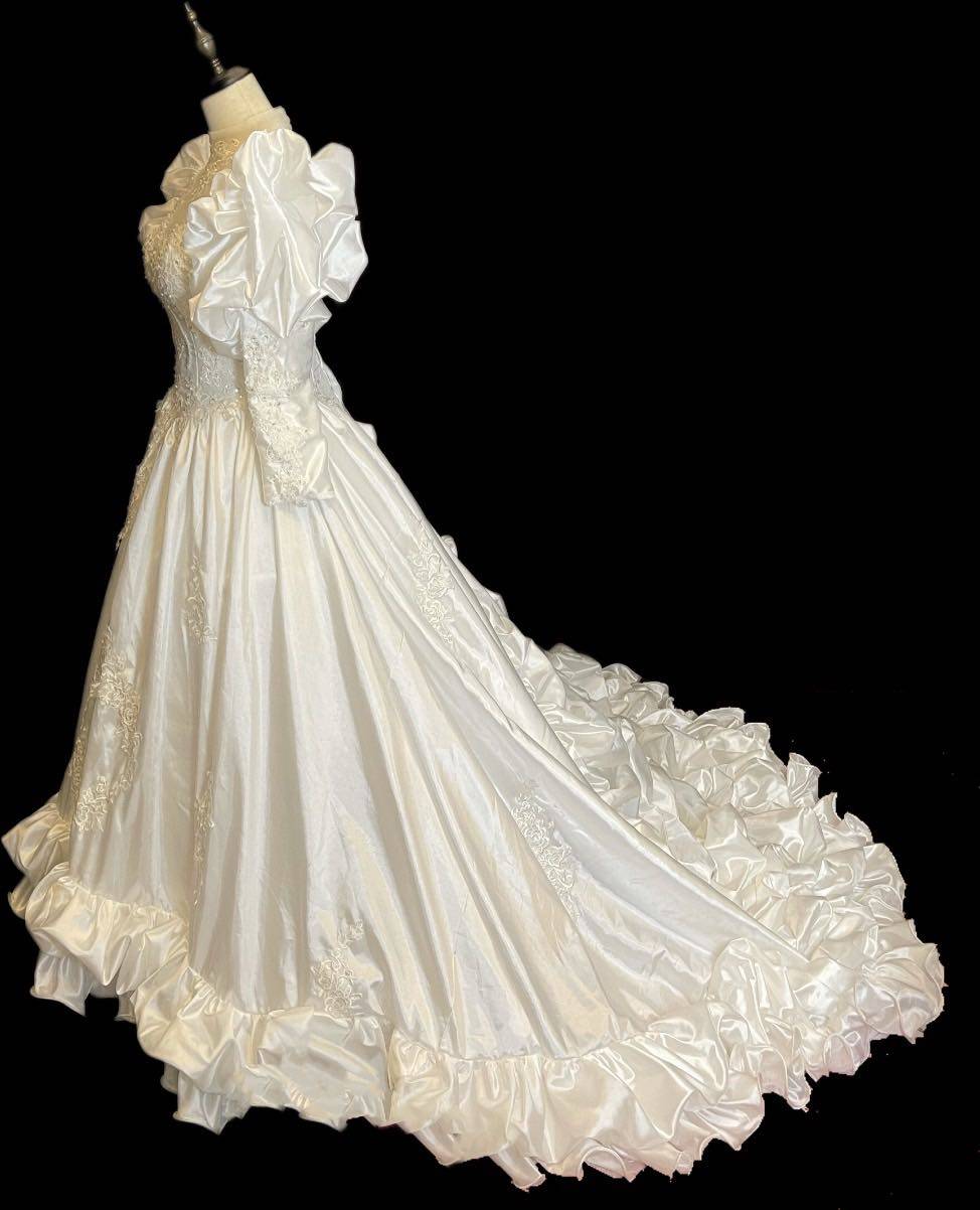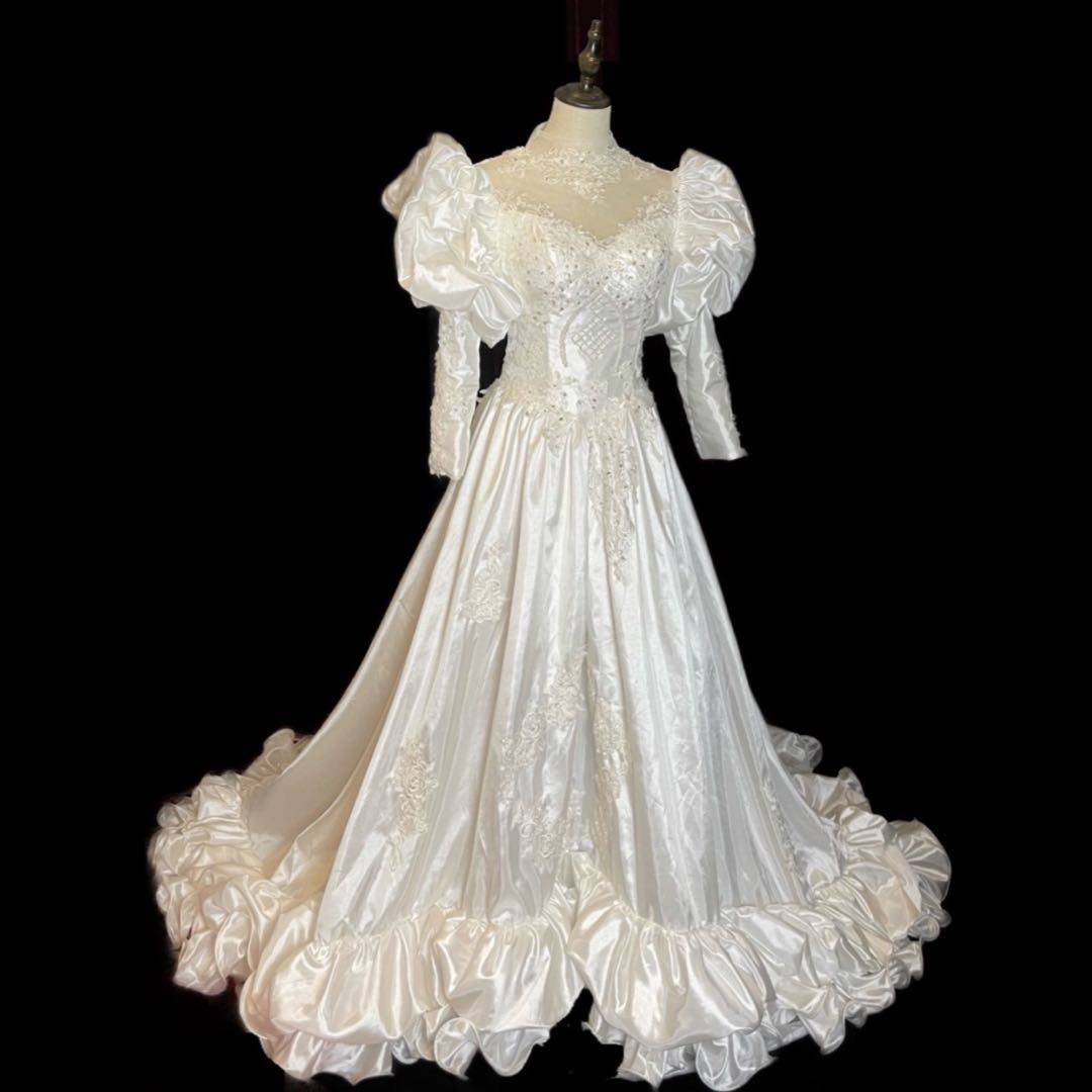 Vintage antique wedding dress court luxury high collar white long-sleeved winter photography trailing ceremony yarn