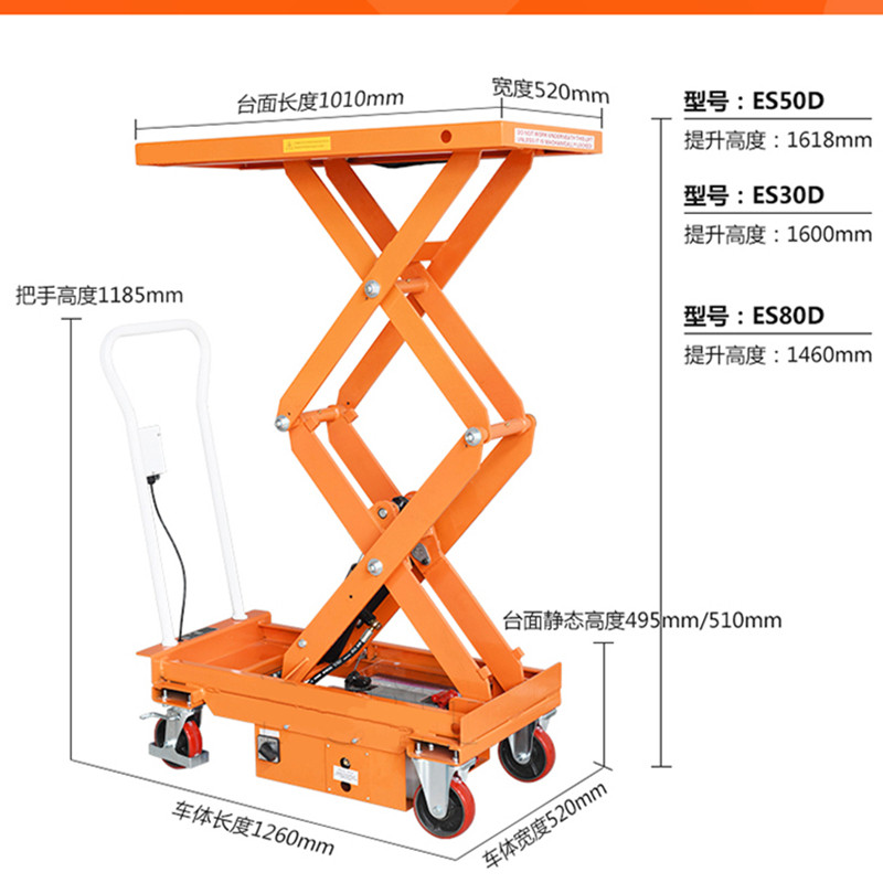 ES50 electric platform car European standard automatic lift car hydraulic small platform 500kg lift platform trolley