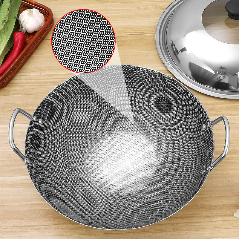 Stainless steel non-stick pan frying pan household round bottom binaural honeycomb frying pan frying pan frying pan gas stove special