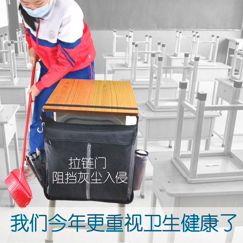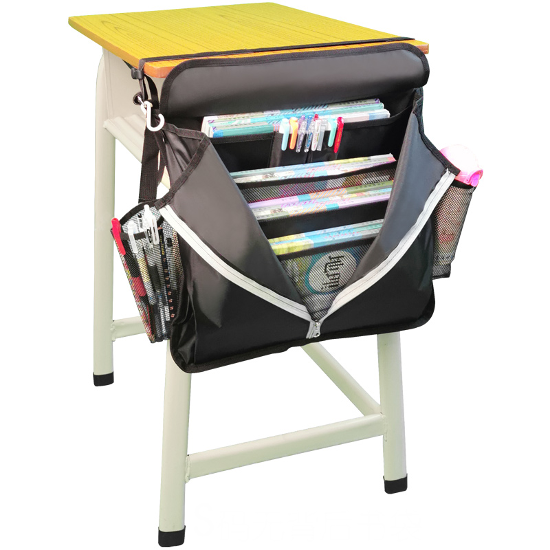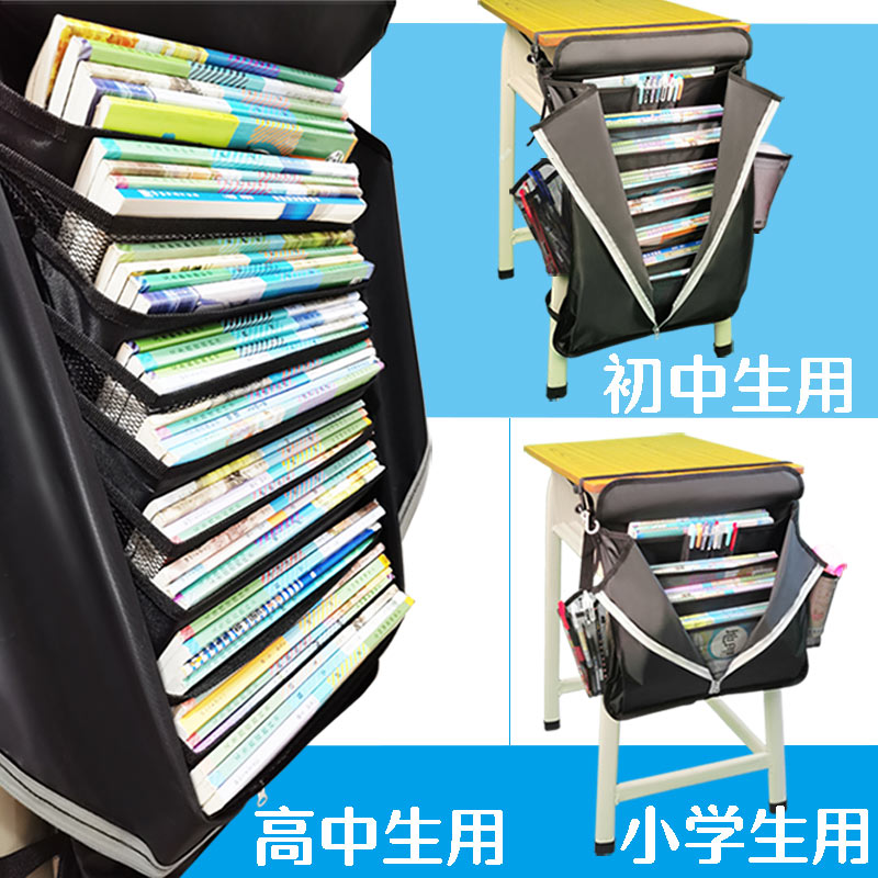 Book bag desk storage student hanging bag desk hanging book bag junior high school student book standing classroom desk artifact table side book hanging bag multifunctional simple large capacity dustproof desktop book put book zipper door