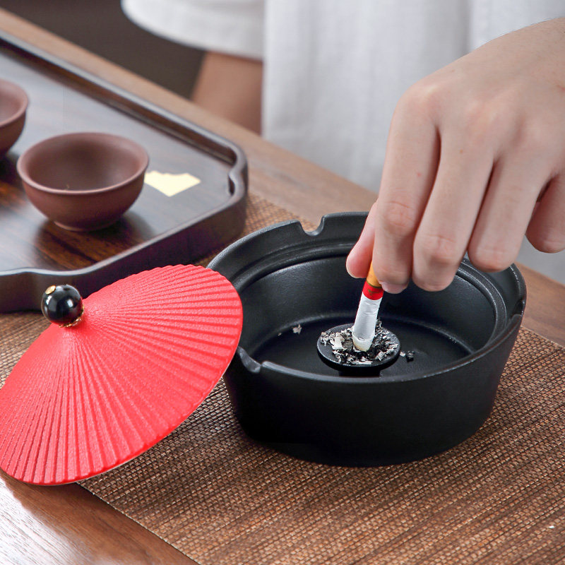 A pint of cigarette ash tray with lid home living room ceramic creative officer hat anti-fly ash smoke cylinder gift box dress personality trend