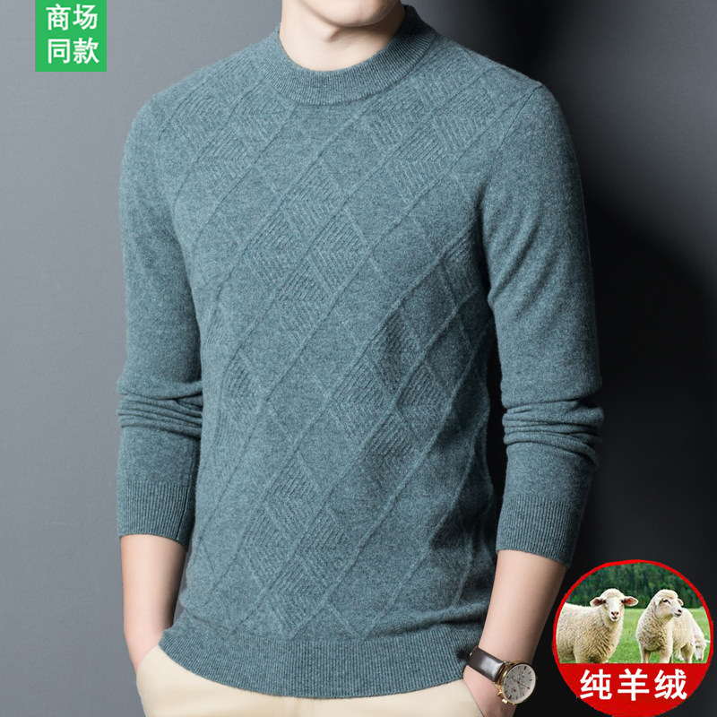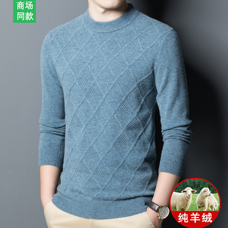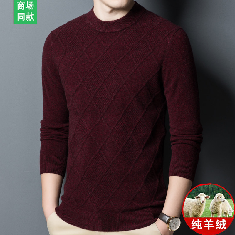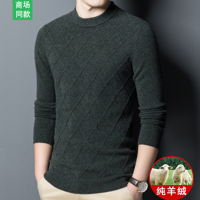 Spring bamboo autumn and winter half height collar 100% pure cashmere sweatshirt men's clothing middle-aged casual wool thickened underknitted sweater