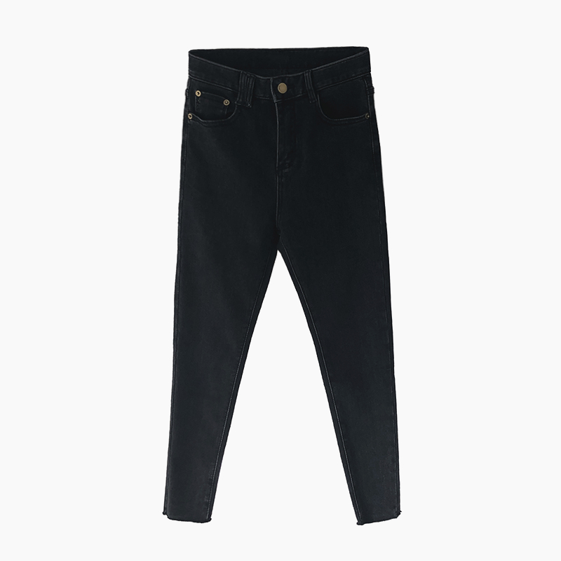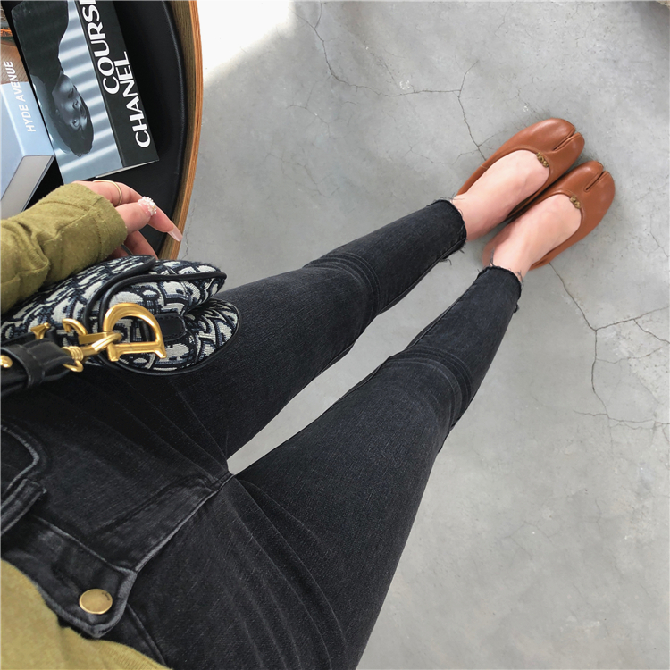 Giant thin ~Western black gray jeans raw edge nine-point jeans Bullet force slim slim pencil pants