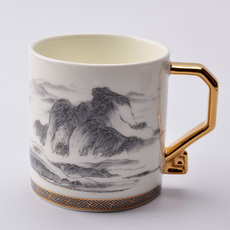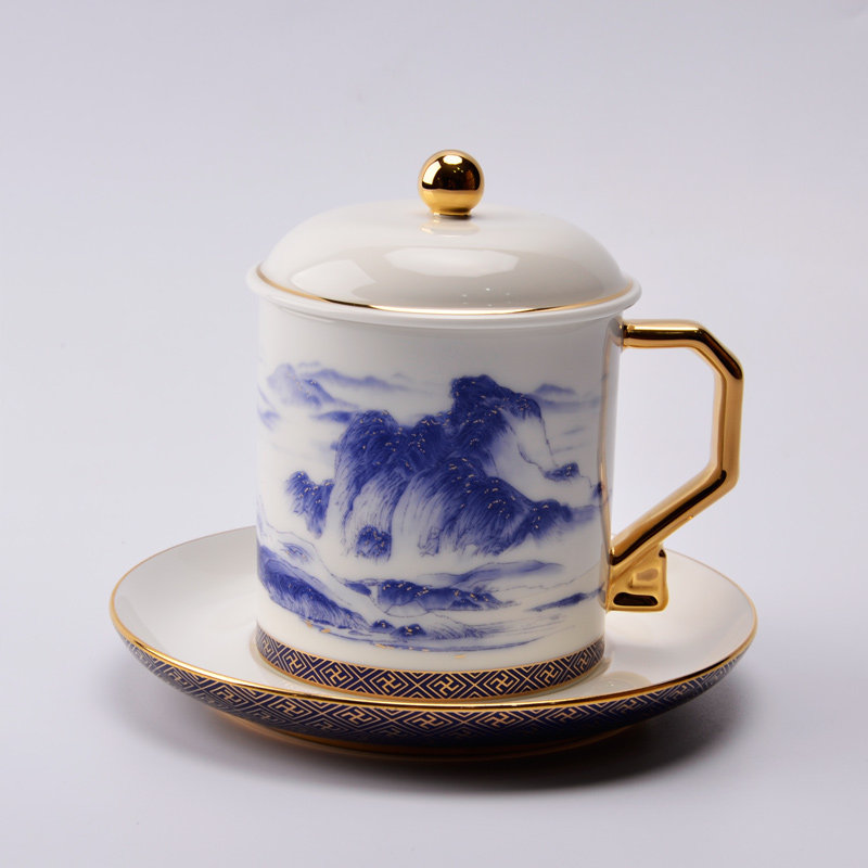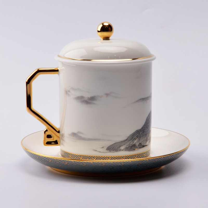 Yongfengyuan new product Qianli Jiangshan ceramic mug with lid cup disc conference cup tea cup water cup gift set