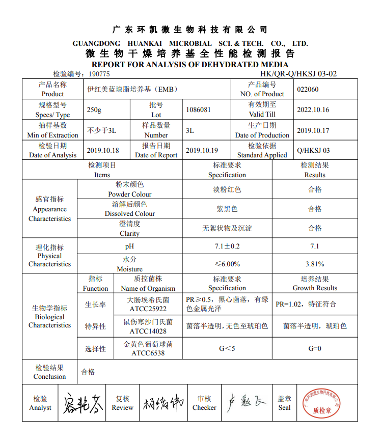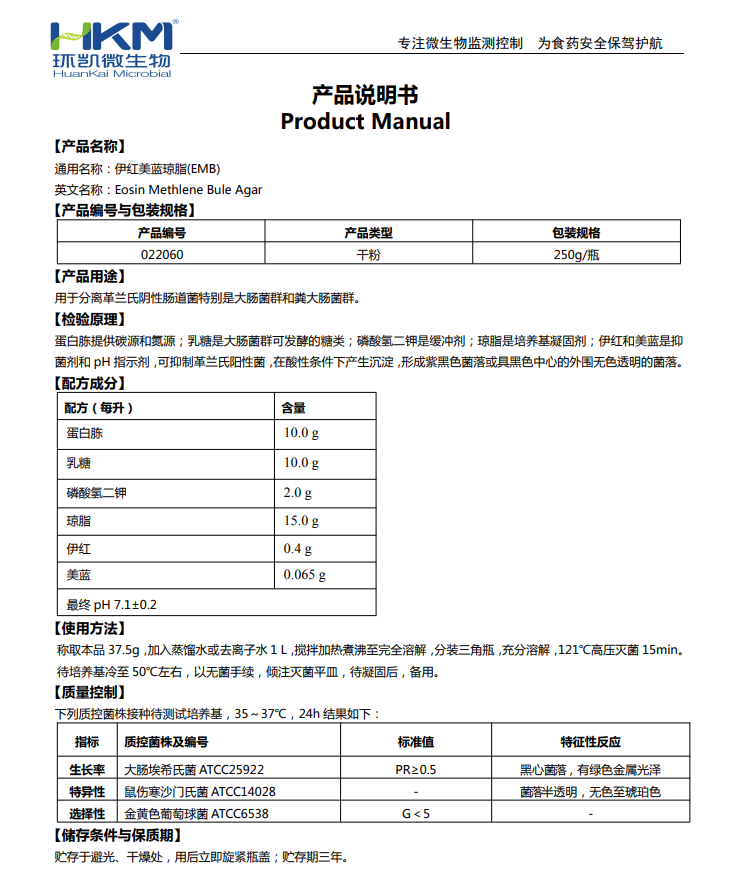 Yi Ren Mei Blue Jongli EMB 250g Dry Powder Culture Separation of Gran Negative Gut Bacteria 022060 ring Kai