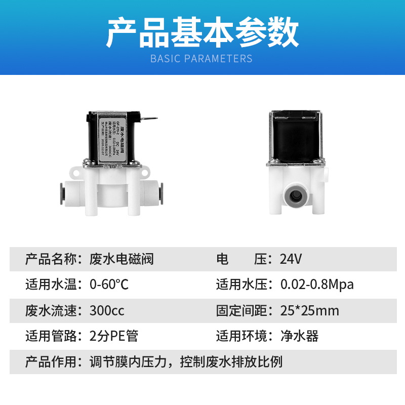 Water purifier solenoid valve 24v water inlet waste water ratio filter General switch Home reverse osmosis water filtration machine accessories