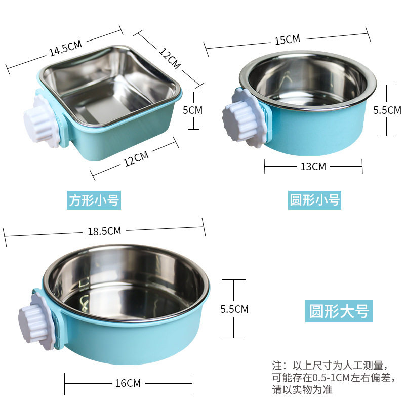 Hanging Feeding Bowl Stainless Steel Pet Feeder Cat Dog Cage Hanging Bowl Anti-Tipping Dog Bowl Food Basin Drinking Water Basin