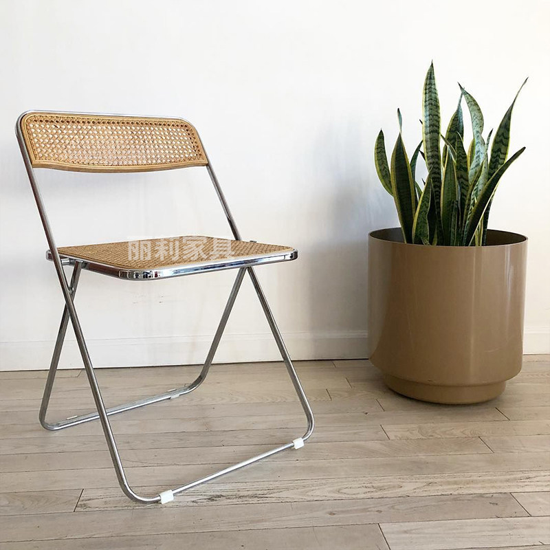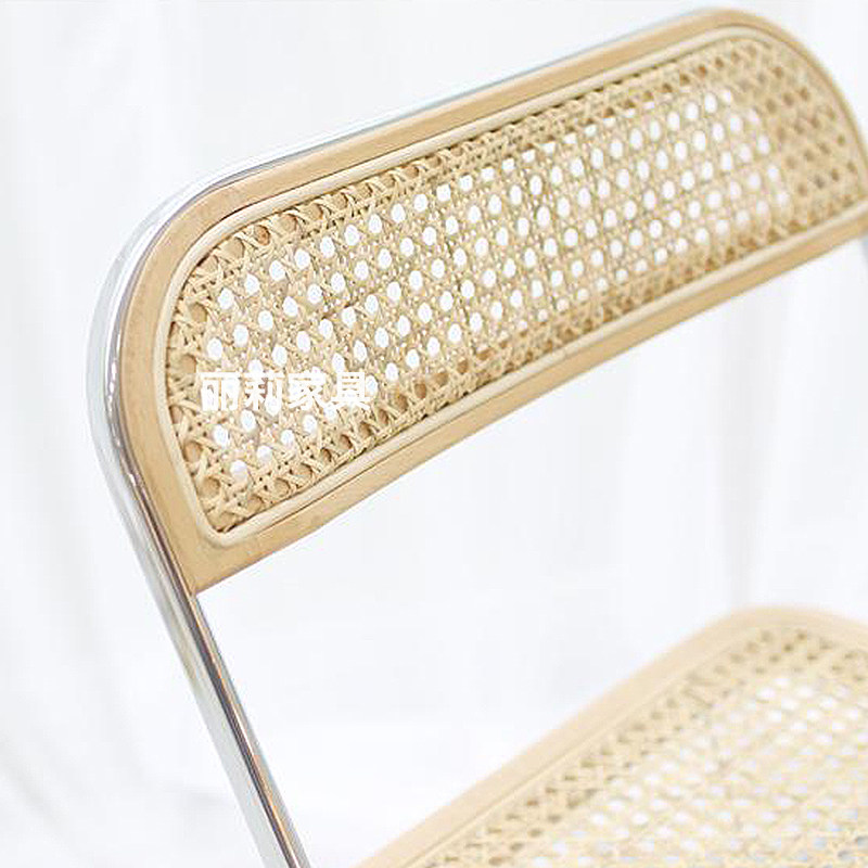 Nordic middle folding chair Leisure rattan chair ins wind stainless steel dining chair Shooting props Rattan backrest chair