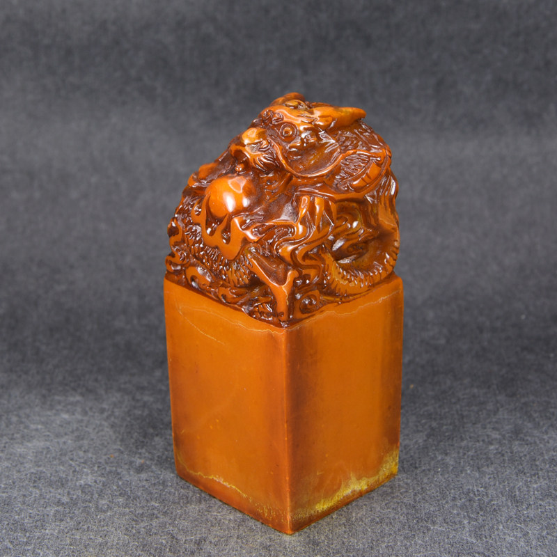 4cm Calligraphy, calligraphy, painting, seal carving seal Jade imitation Shoushan stone material Tian Huangshi collection book engraving Three sheep Light yellow seal