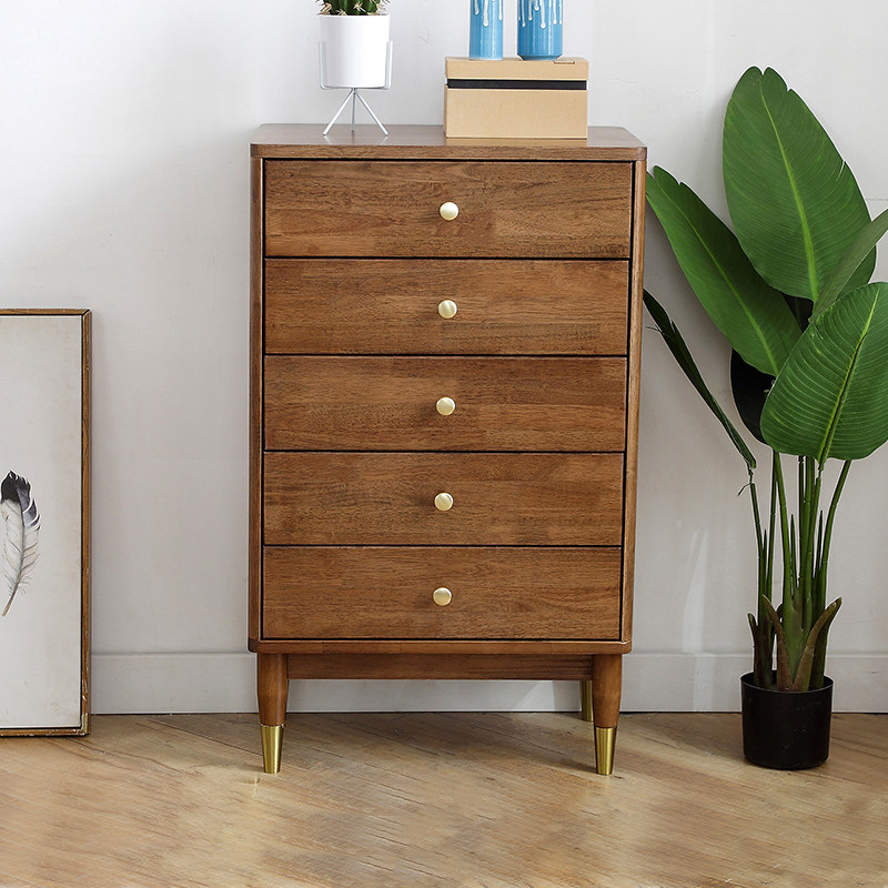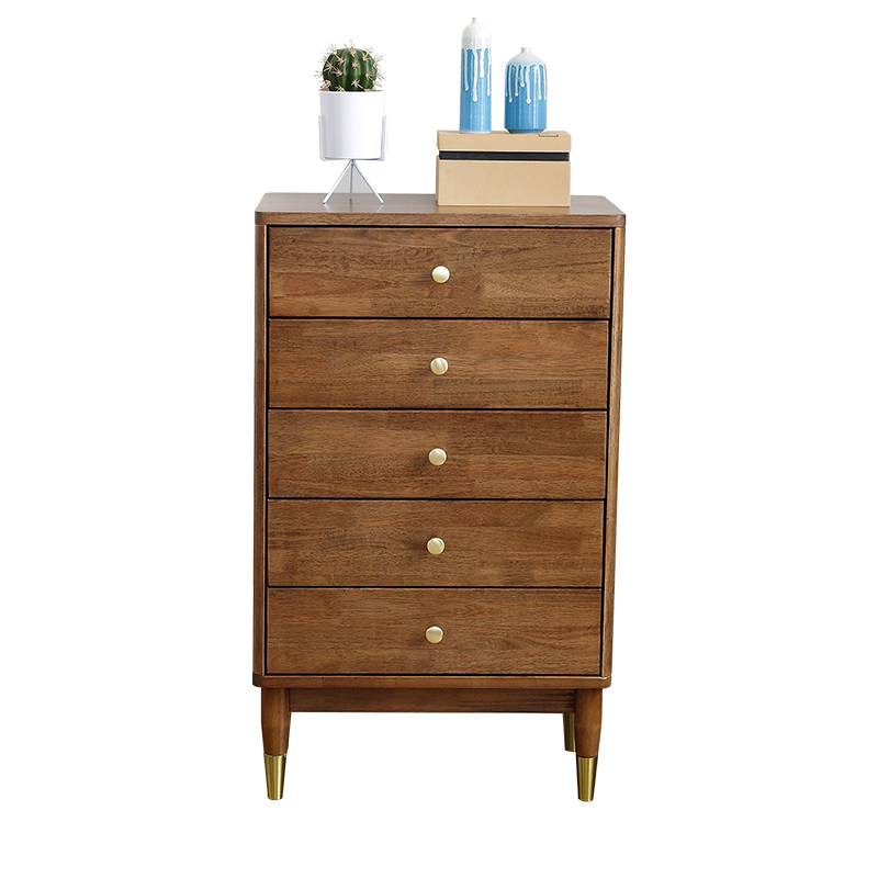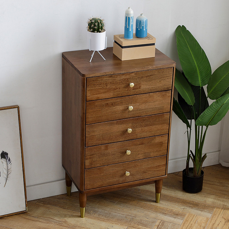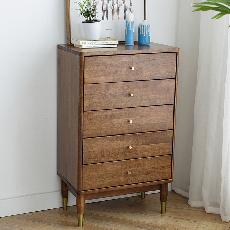 New Chinese style solid wood chest of drawers combination walnut color bedroom living room Nordic light luxury storage drawer cabinet