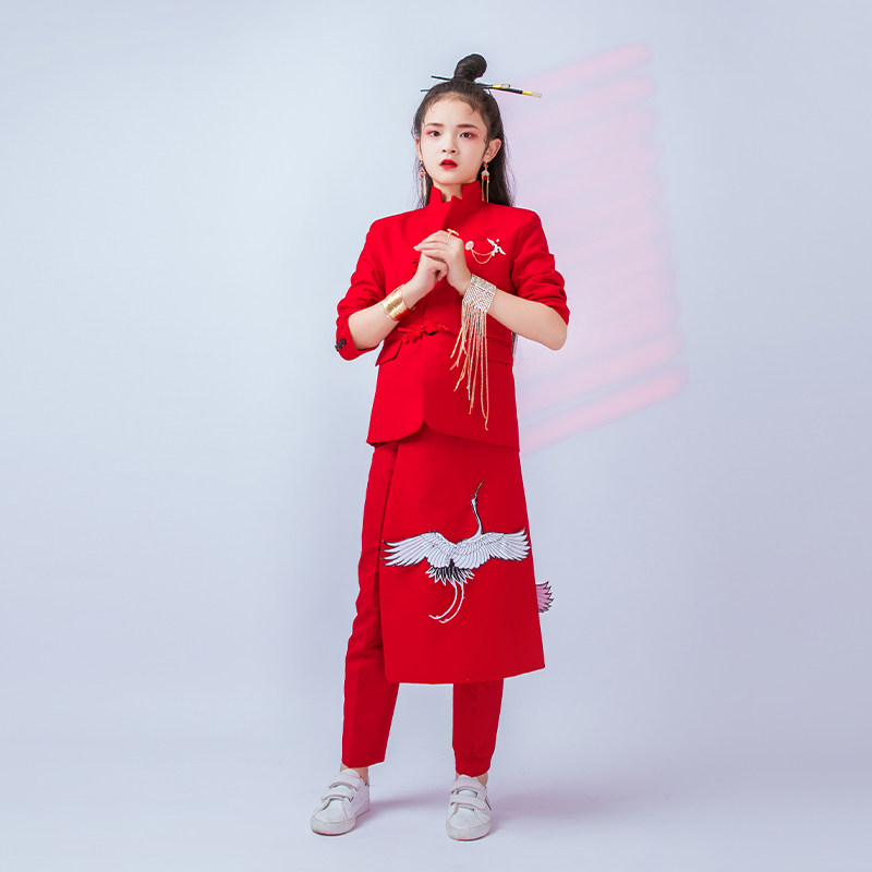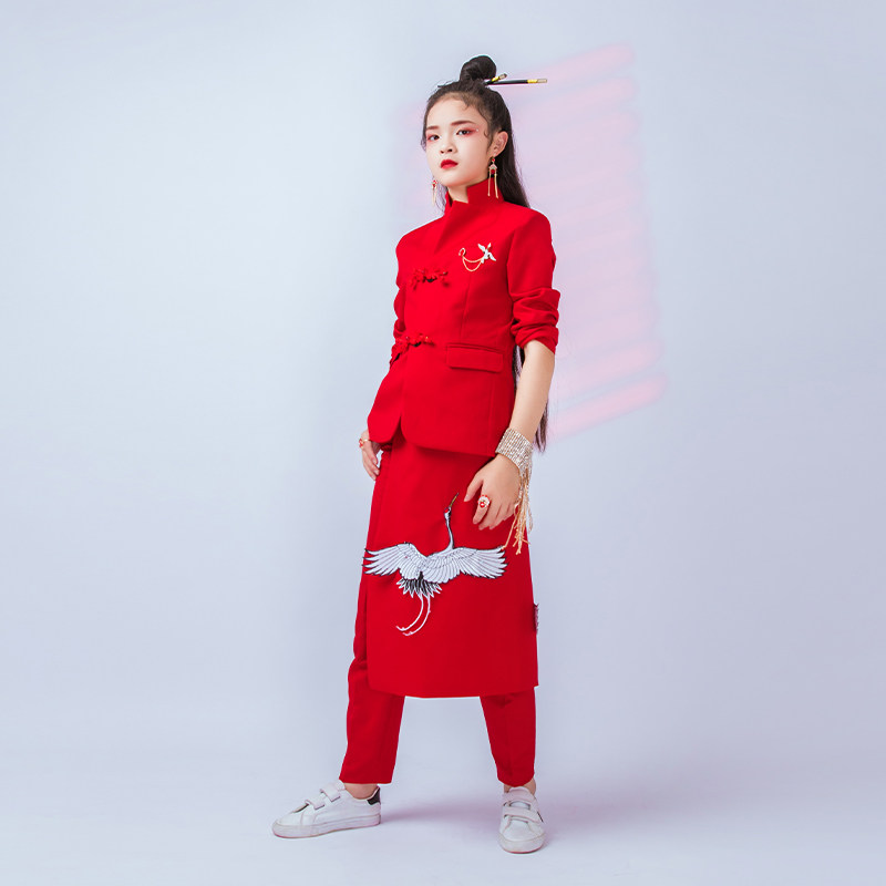 Children's new Chinese national tide suit suit recitation dress personality boys and girls street dance performance Chinese style costumes