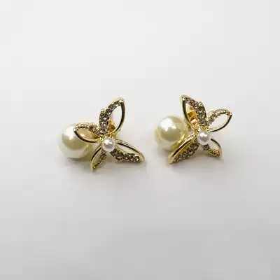 2021 New Silver Needle butterfly pearl earrings female pink bow earrings