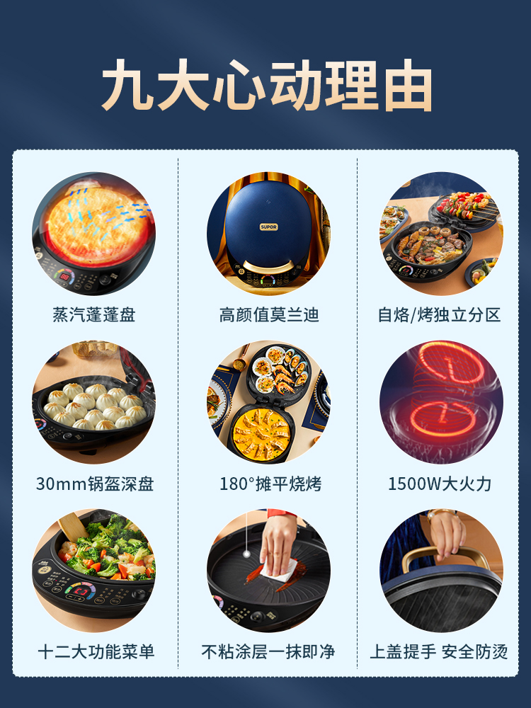 Supoir Electric Cake Pan Household Double Sided Heating Steam Electric Cake Stall Branded Cake Pan Pancake Machine Deepen The Plus