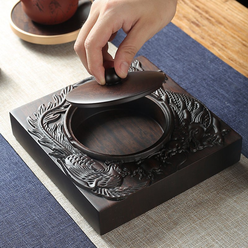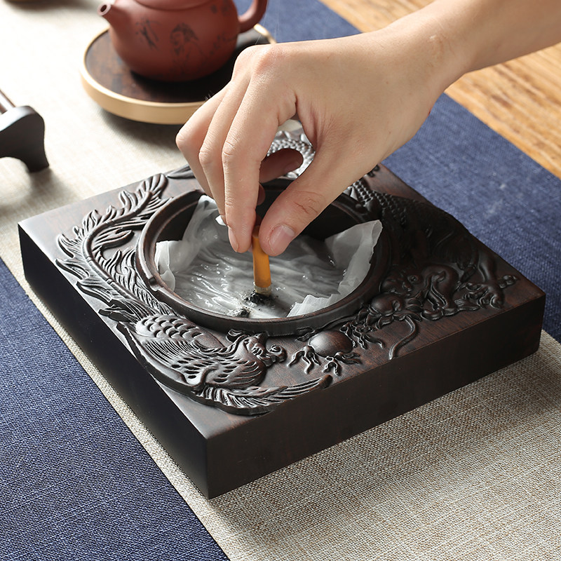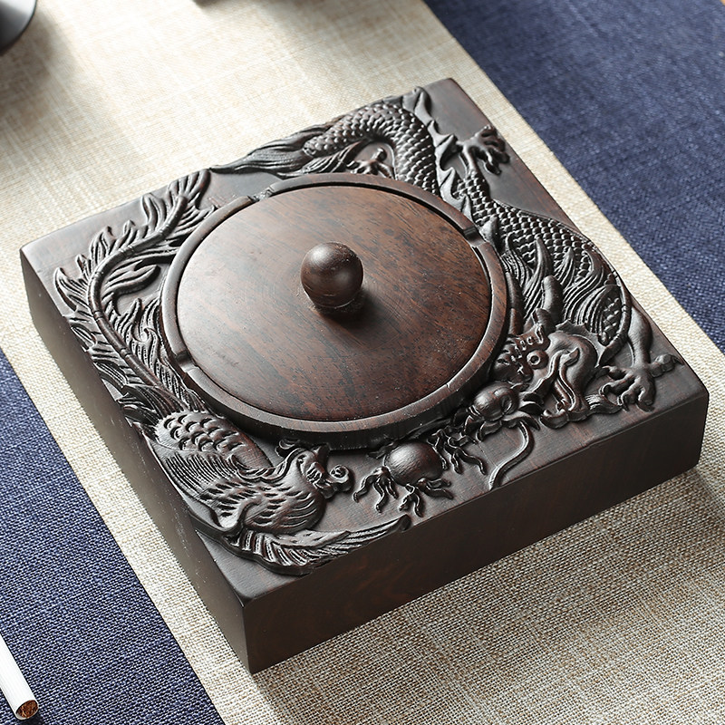 Ebony ashtray Longfeng Chengxiang (small) with lid Ebony ashtray Longfeng Chengxiang (large) with lid Ebony ashtray Dragon and Phoenix (small) Ebony ashtray Dragon and Phoenix