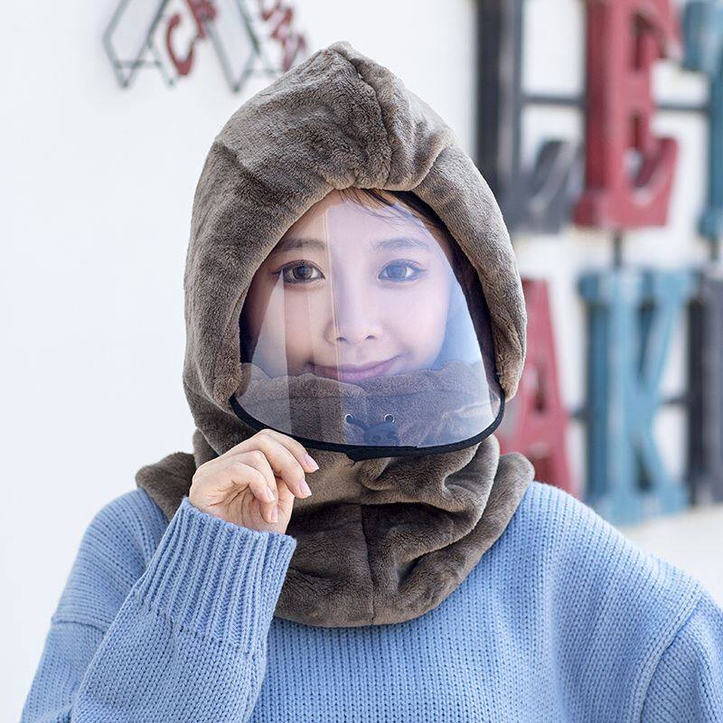 Douyin electric car windbreak hat hood bib neck integrated outdoor ear protector hat head hat hat letter chu Biying business