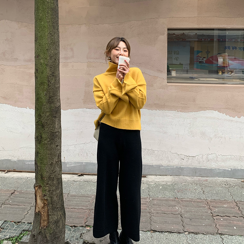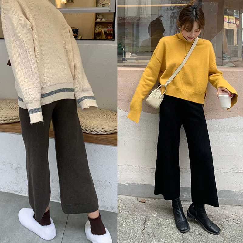 Small pulled out wool tight waist high elasticity nine-minded pants wide legs and cotton fabric sensitive material