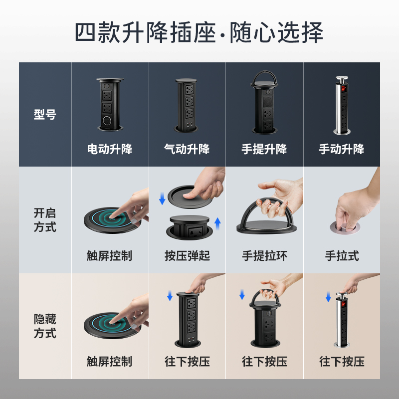 Odorant Lift Socket Power plug-in Home Kitchen Embedded Island Bench Table Face Standing Charge Motion Extension Cord