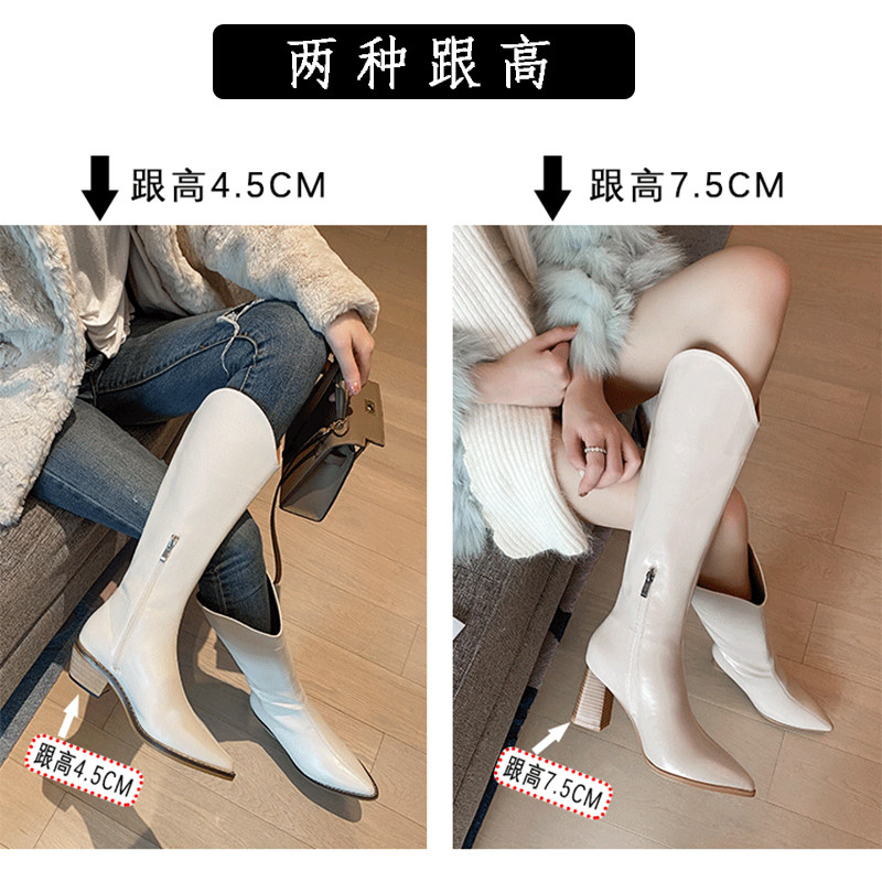 White Boots Children Long Drum Boots Woman Riding Boots 2022 New Small Subfat Mm Long Boots Coarse Leg High Heel High Drum Boots