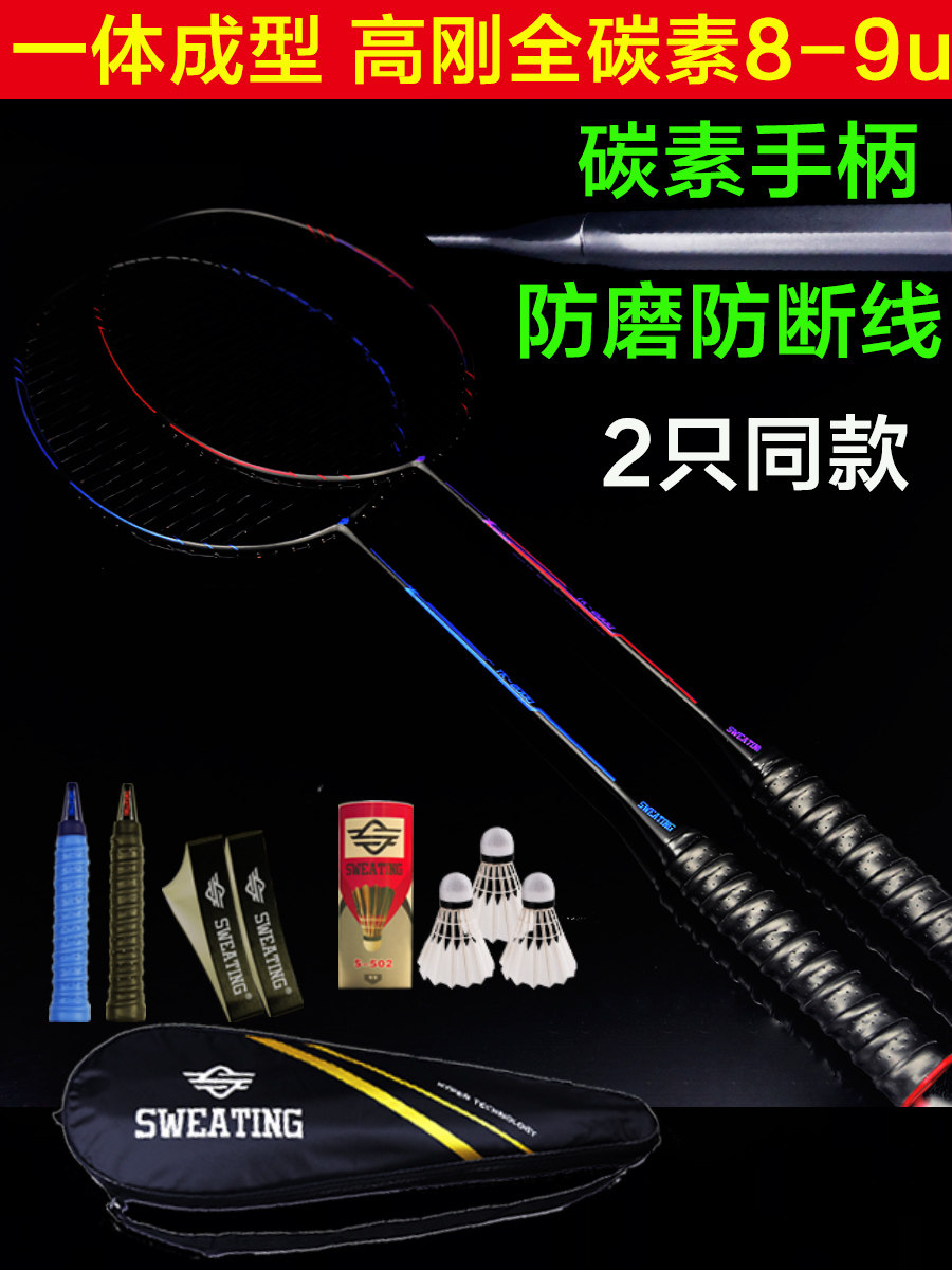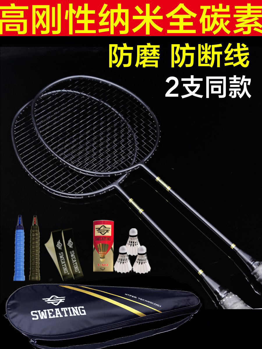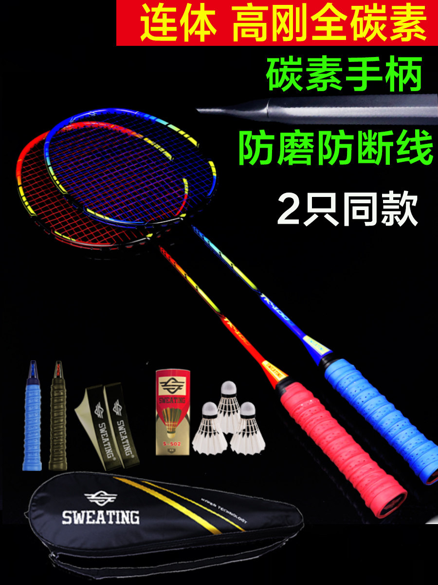 SWEATING BADMINTON RACKET 2-pack FULL carbon adult offensive double-shot badminton racket single anti-playing set