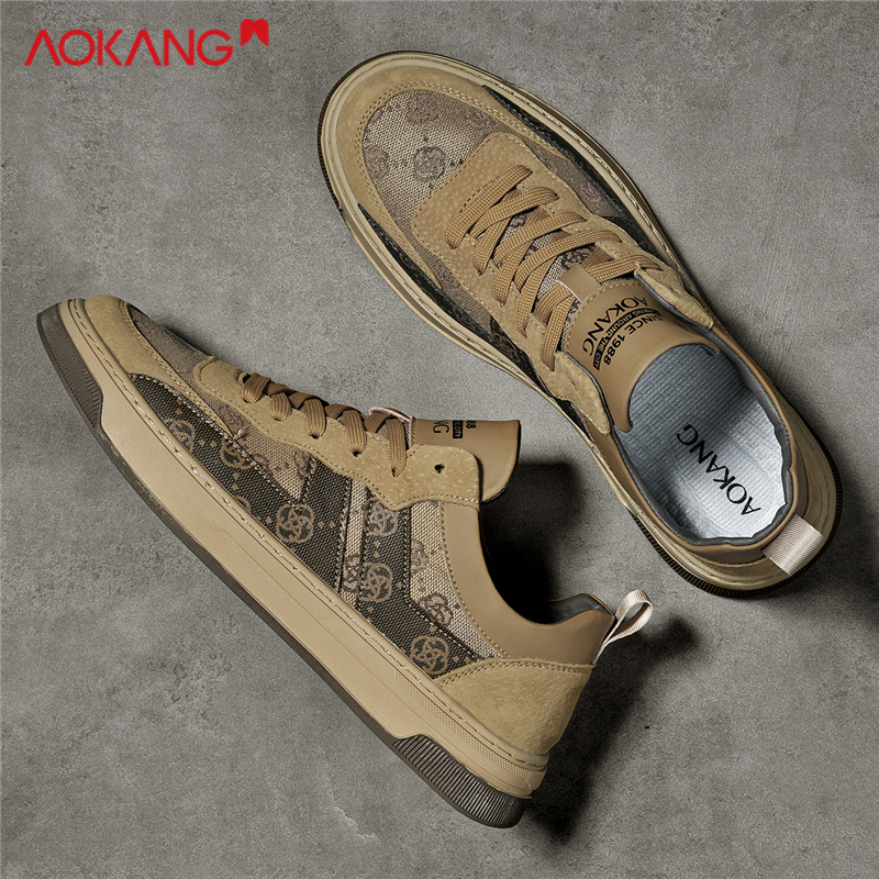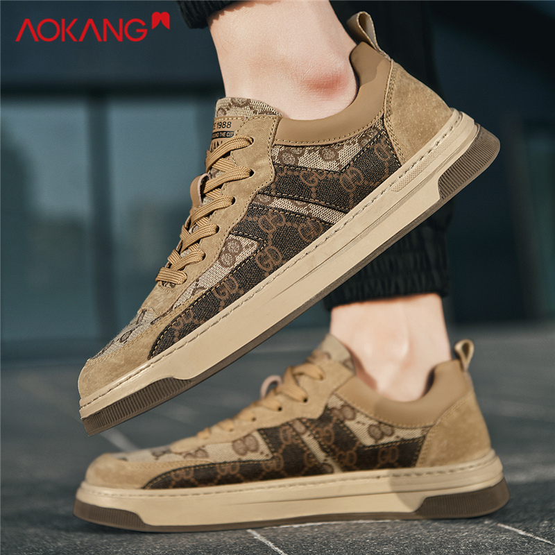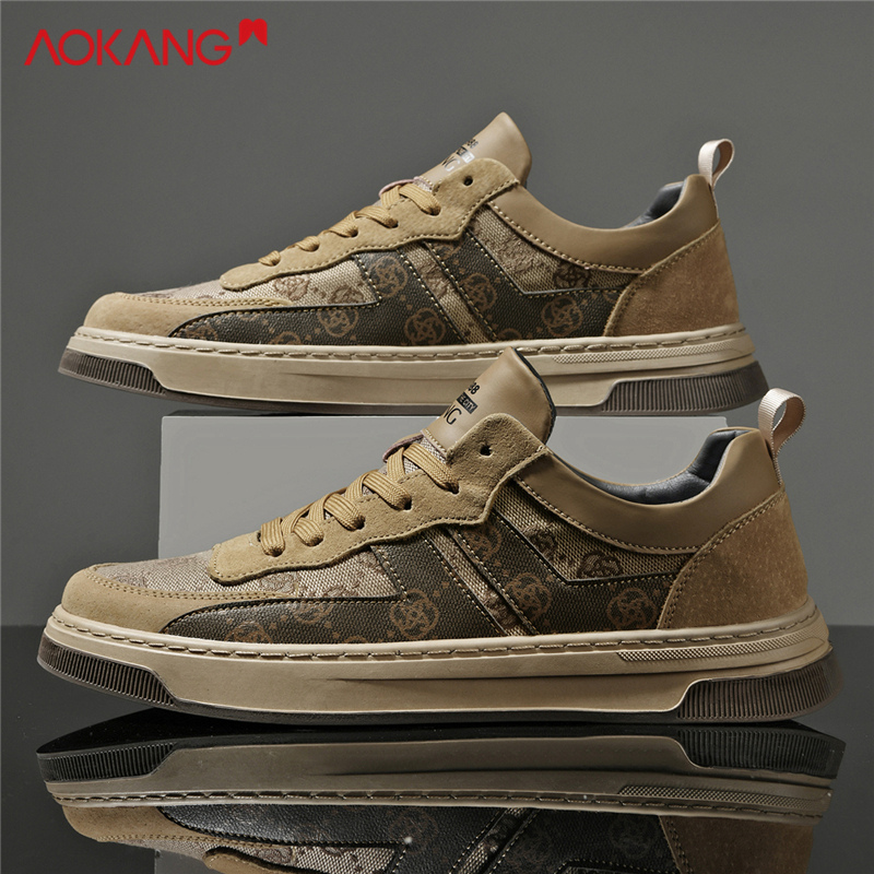 Aukon men's shoes English casual leather shoes men's new tide shoes 2023 low - gang shoes summer wear plate shoes
