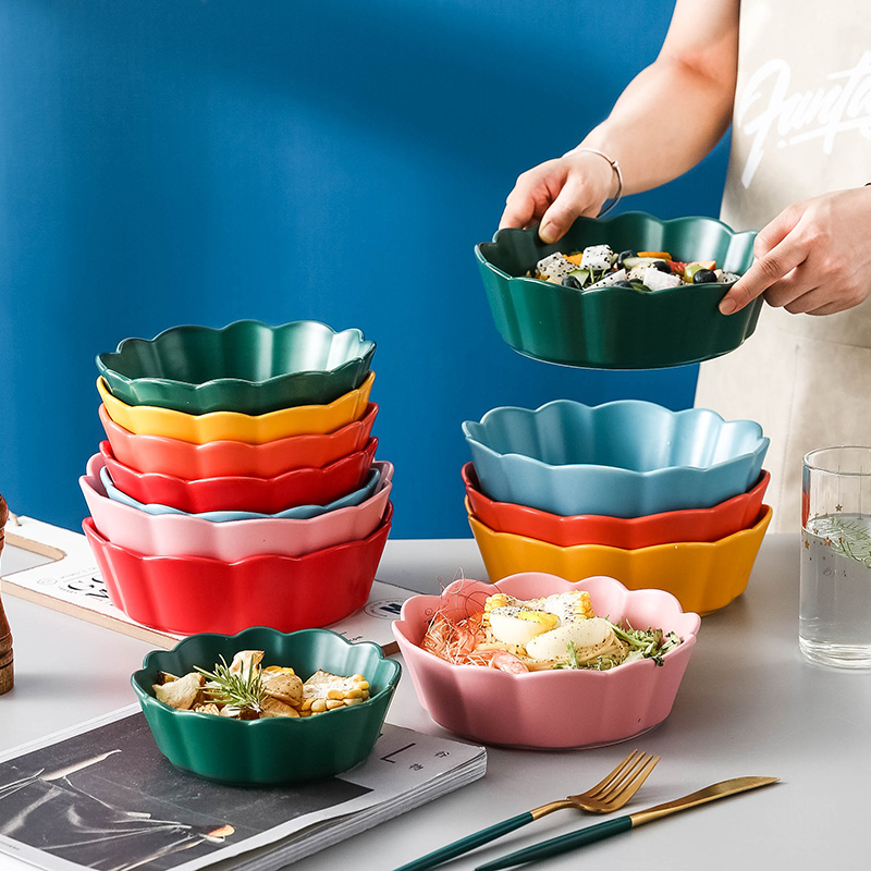 Creative ceramic bowl red snack bowl fruit bowl light luxury salad bowl with personalized ceramic tableware