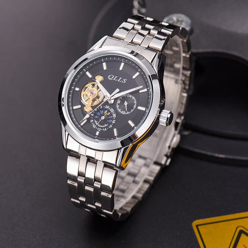 Chillo Watches Men's New Large Dial Fully Automatic Mechanical Watch Hollowed-out Tourbillon Steel Band Male Watch