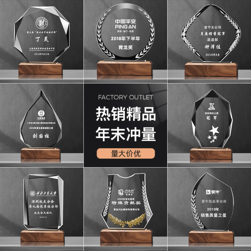 Wooden Trophies Custom Creativity Trophy Metal Free Lettering Company Annual Conference Awards Excellent Employees Crystal Trophies