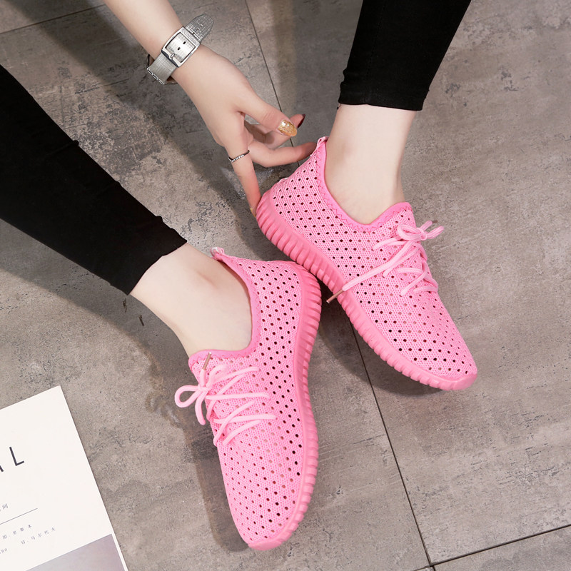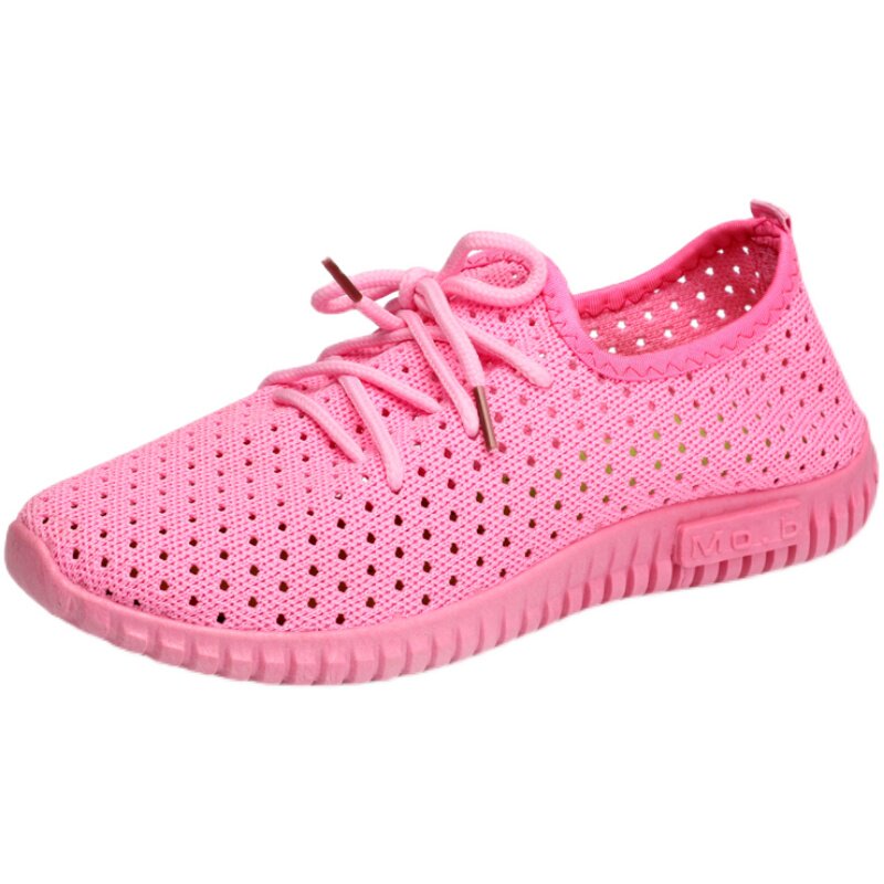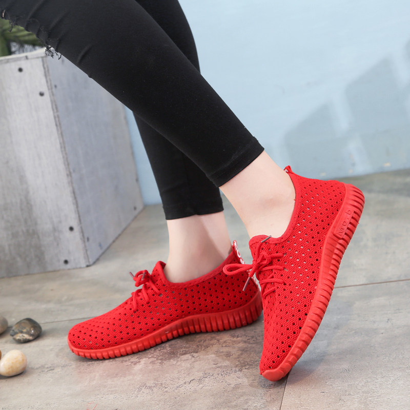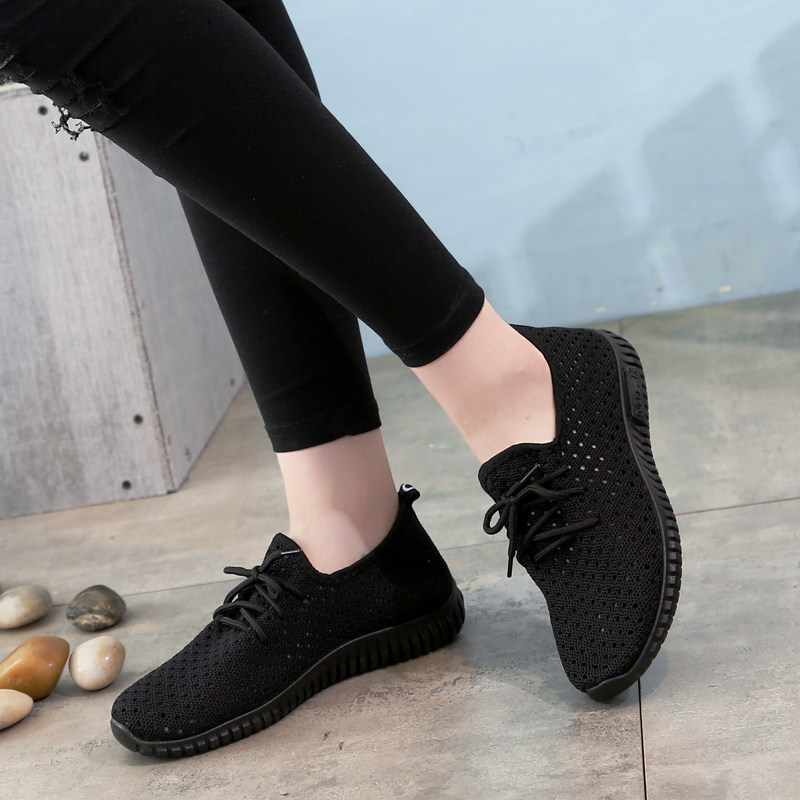 Spring and summer mesh old Beijing cloth shoes flat casual shoes lace-up non-slip solid color flying woven comfortable women's shoes