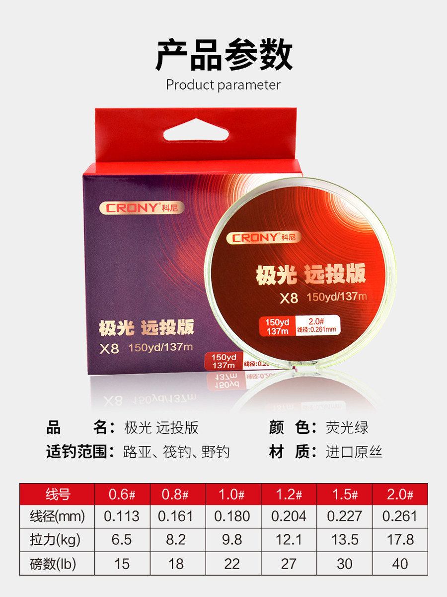 CRONY Kony's new Aurora long-range eight-braided X8 imported original silk road sub-PE raft fishing braided line