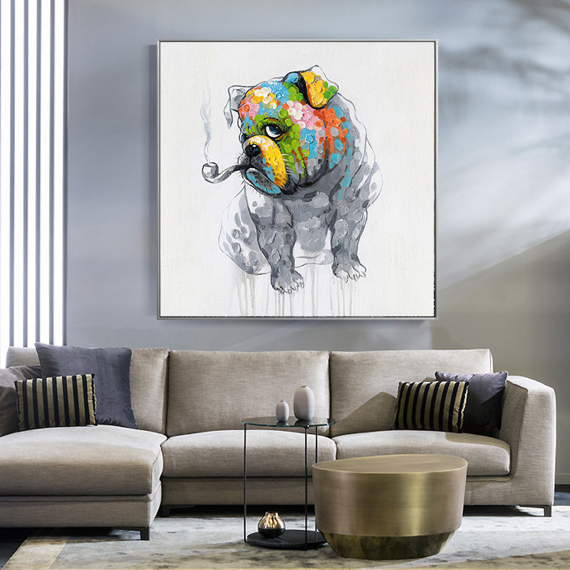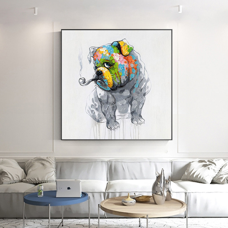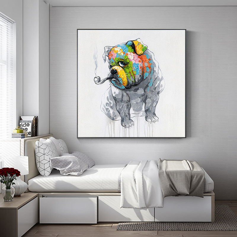Cartoon dog original pure hand-painted oil painting Nordic style living room decoration painting Dining room bedroom hanging painting Children's room mural