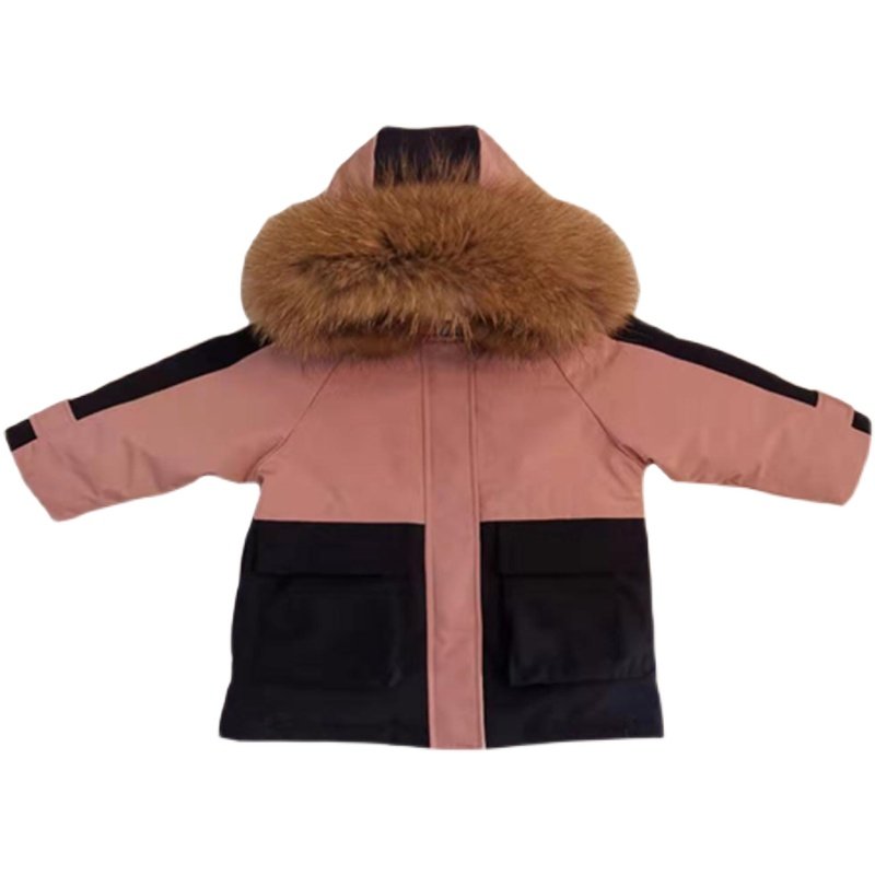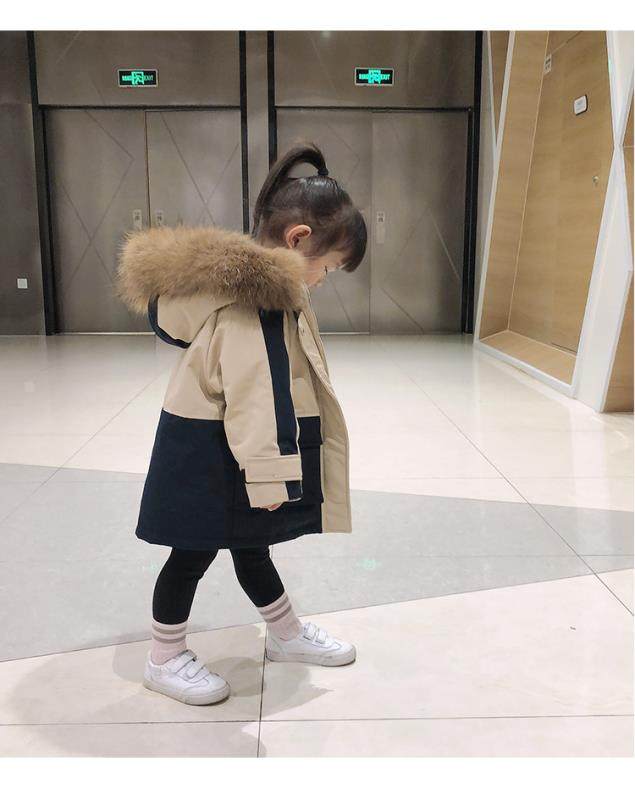 Hong Kong children's overalls overcome 2021 new Korean version of the middle child's mid-length version of the big fur collar down jacket waterproof jacket