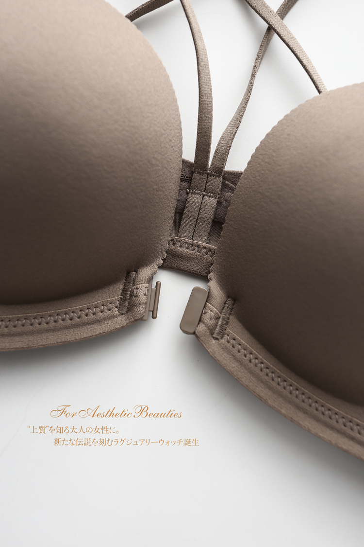 Japan Light Wood Cotton Comfort No Steel Ring Front Button Thickened Poly-Woo Cross Beauty Back Bra Female small breasted woman with big underwear
