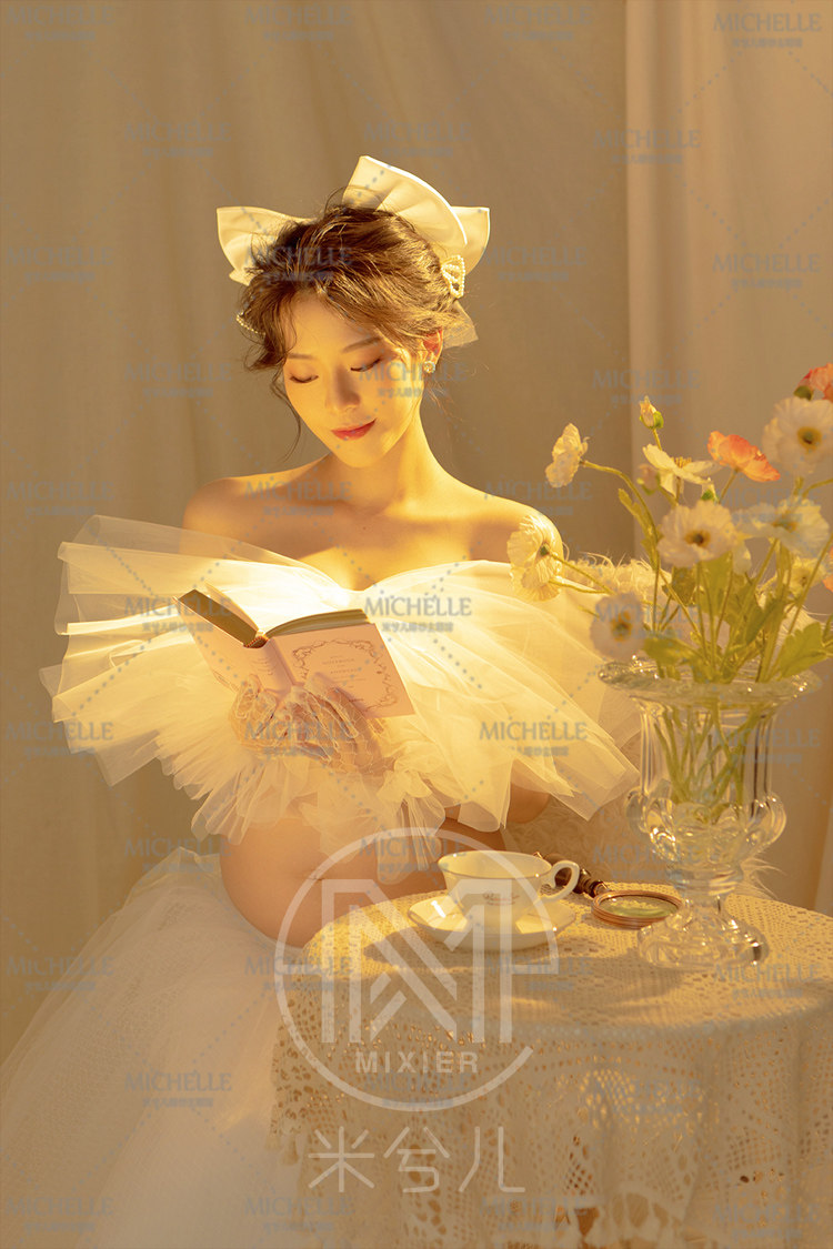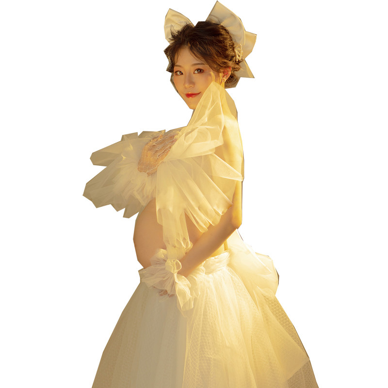 8846 exhibition new photo studio pregnant women Photo clothing cute beautiful bow white gauze pregnant clothes rental