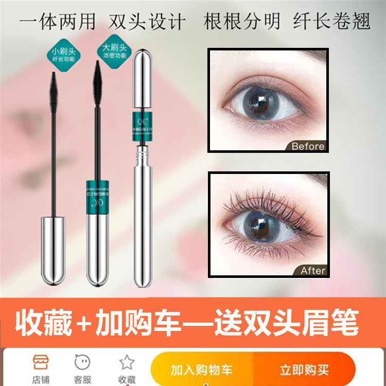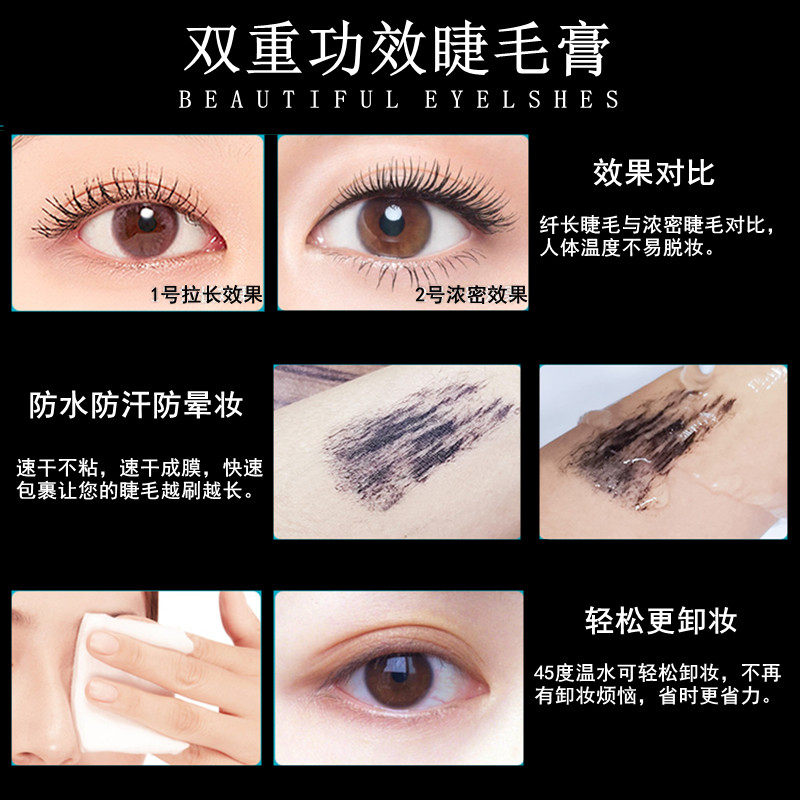 Slim and waterproof 4D double-effect mascara, thick and curling, not taking off makeup, not smudged, long-lasting, long-lasting encrypted sea urchin brush head