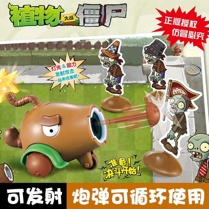 Genuine Plants vs. Zombies 2 toy ejection coconut corn cannon doll children's pull back mechanical shark