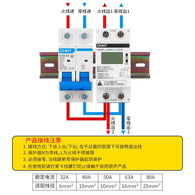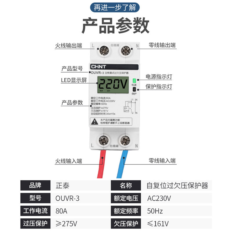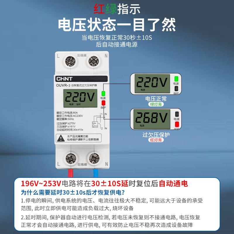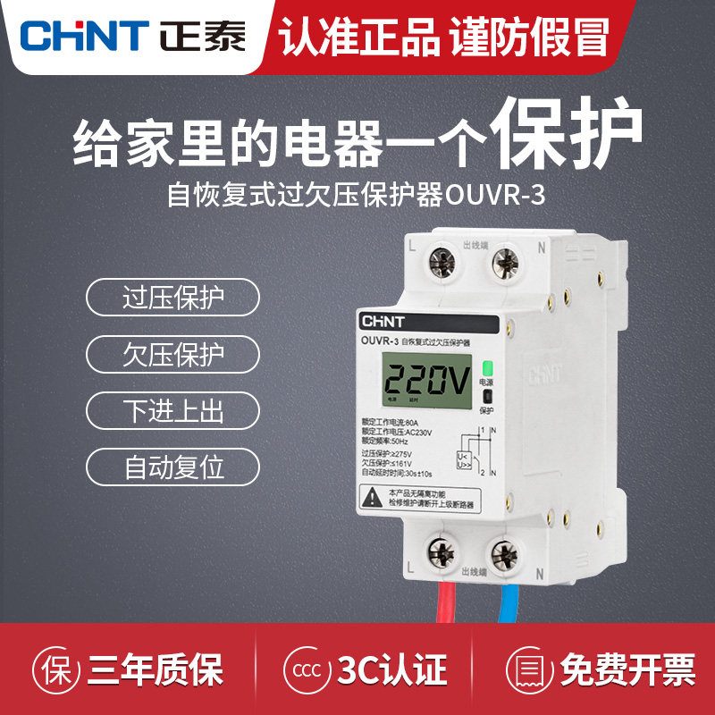 Chint digital display over-voltage protector household overvoltage undervoltage 40A self-recovery compound delay automatic reset 63A
