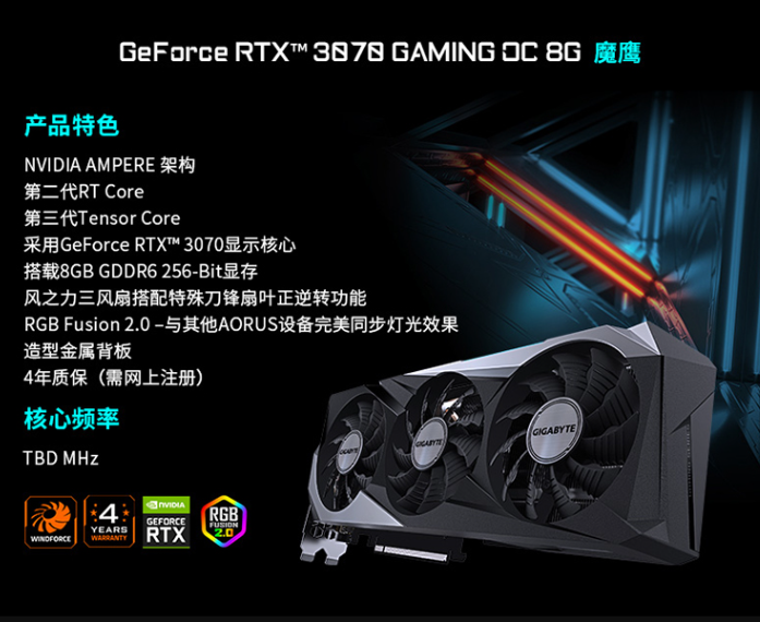 GIGABYTE TECHNOLOGY GIA RTX 3070 GAMING OC Magic 8G game graphics card with new national row lock