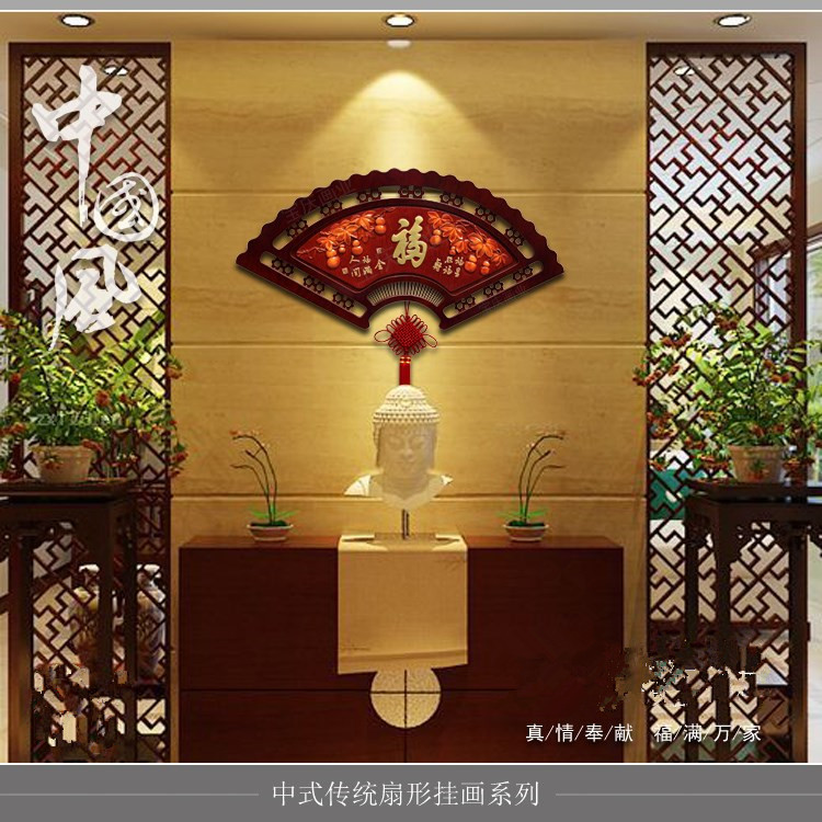 Chinese knot pendant large Fu word peach wood pressed board living room decoration wall hanging home decoration background wall porch
