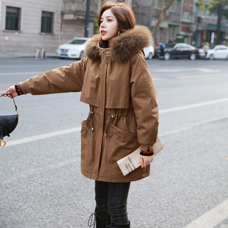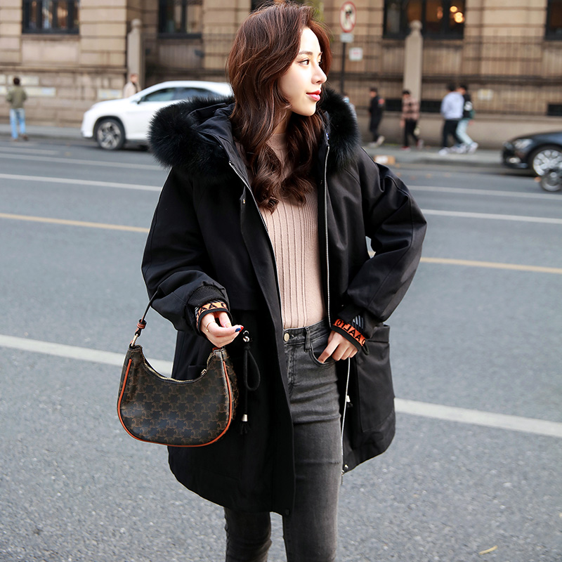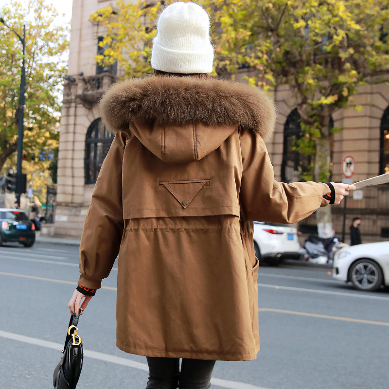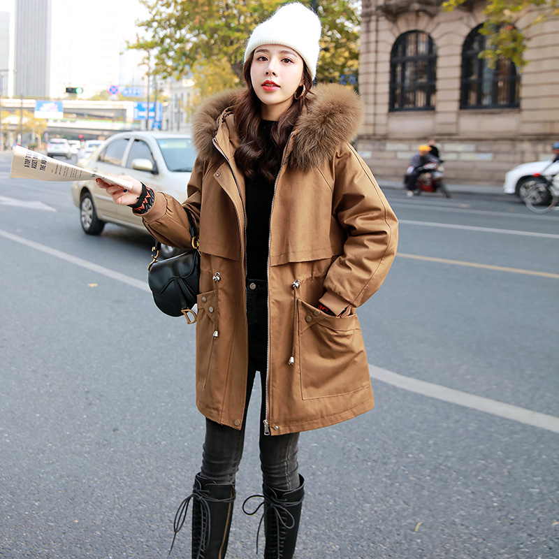 2021 New cotton suit Korean version plush liner faction overcomes medium long version plus suede thickened 100 lap jacket female cotton clothes