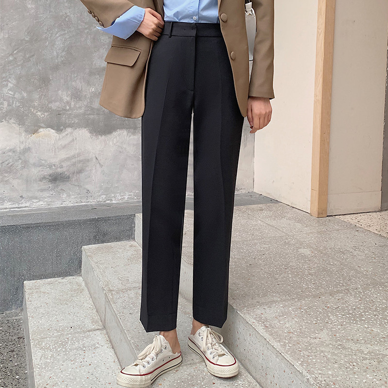 Spring and Autumn New Pants 2021 new casual pants loose tube open black and thin and suit tide