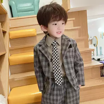 Korean boy suit suit Korean version of British style handsome casual children Middle and big child Plaid small suit two sets