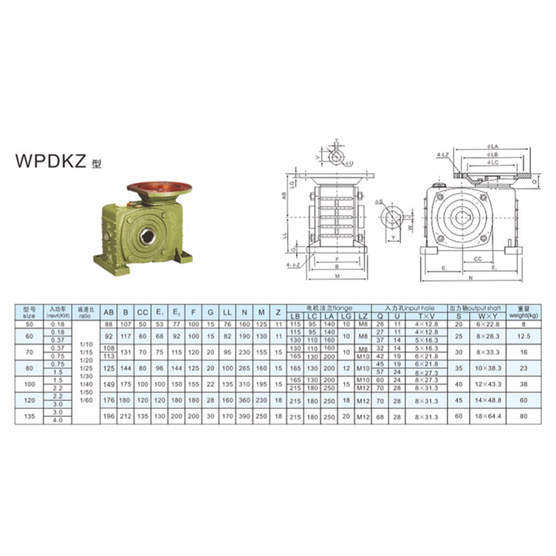 Hangxiao gear WPDKZ reducer factory direct sales speed ratio 1 25 50 60 vertical worm gear transmission