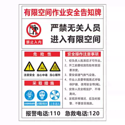 Limited space safety risk points a set of limited space workplace safety notice board limited space operation site warning signs and safety notice boards when entering the limited space internal work, please strictly follow