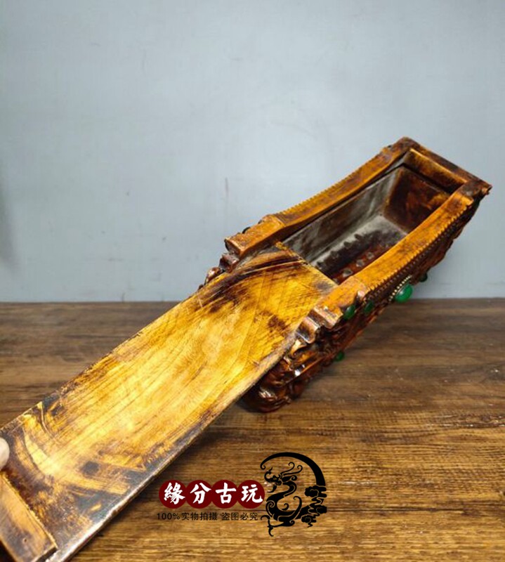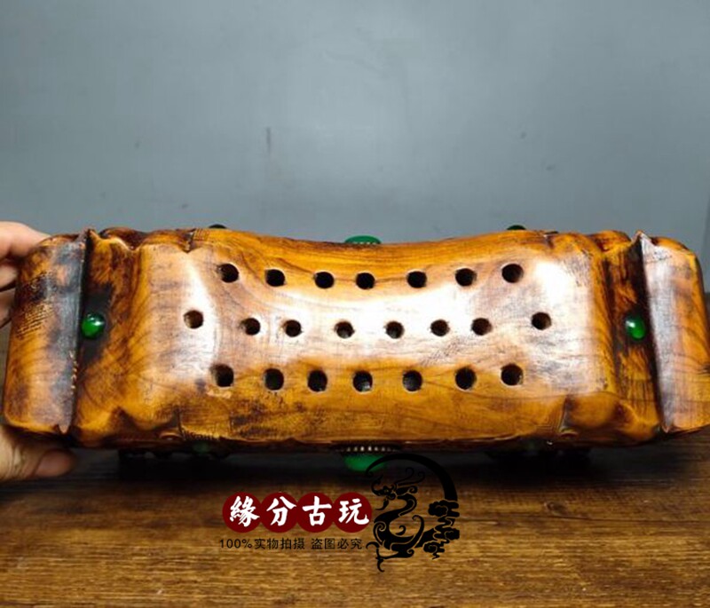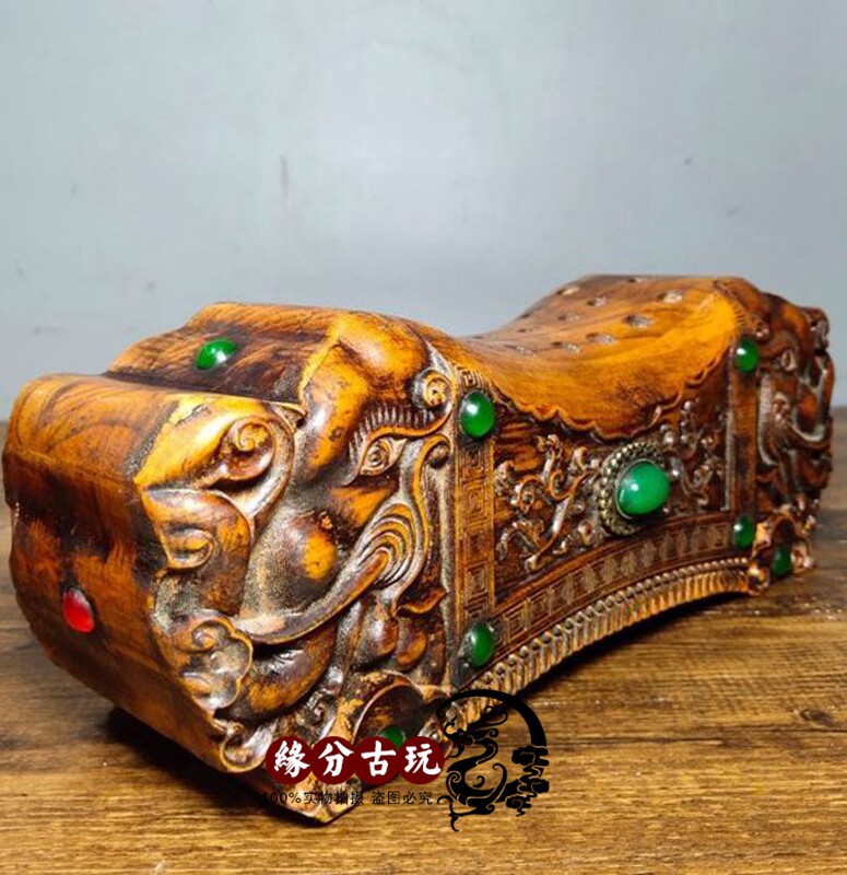 Ancient play inlaid jewel yellow flower pear wood pillow cervical spine pillow solid wood hard pillow neck cervical spine wood pillow upscale gift box-Taobao
