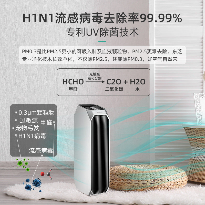 Japan Toshiba air purifier household formaldehyde removal machine Small negative ion disinfection sterilization smoke smell suction cat hair