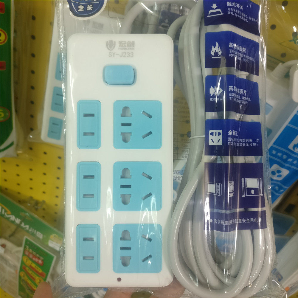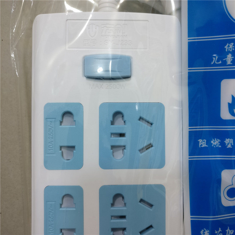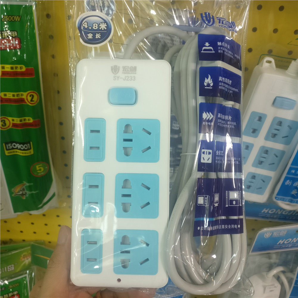 Hongjian SY-J233 power plug board 2.8m 4.8 socket 2500W 6-bit conversion socket